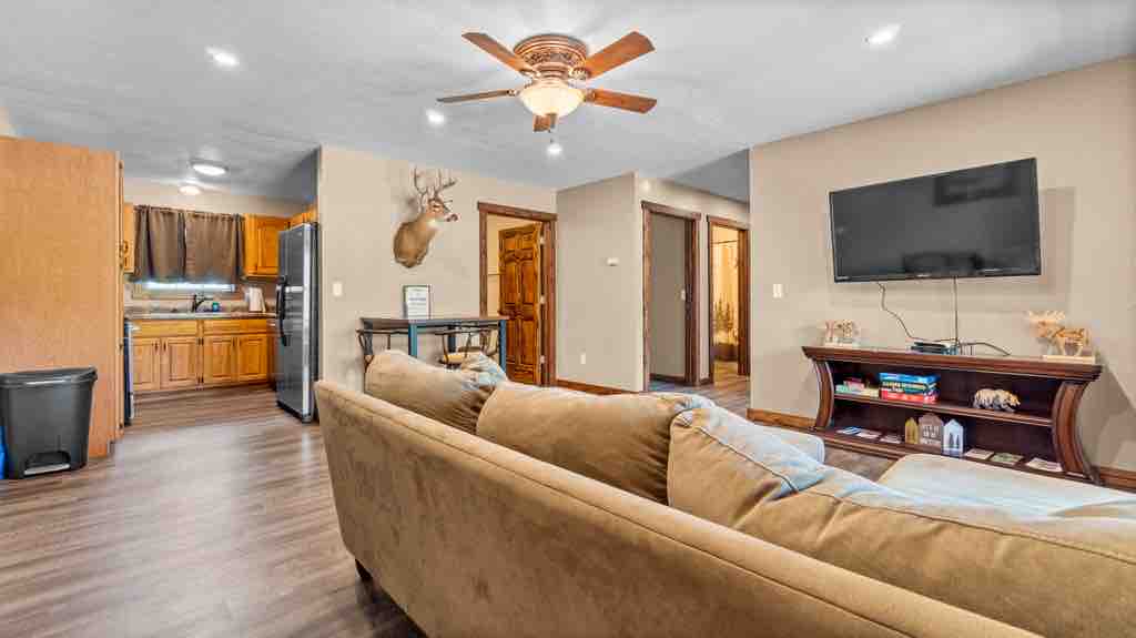 Take it easy at this unique and tranquil getaway. Beautiful views of the Deer Run Lake and wildlife. New updates, the kitchen has been fully updated with new stove, microwave, dishwasher and countertops. All the light fixtures and ceiling fans have been updated. NEW front and back decks,a new Queen sized bed, new bathroom flooring and toilet, fresh paint. Cabin is located in Deer Run. With rental you will receive a pass to the Deer Run Private beach on the Current River, 1 mile away.