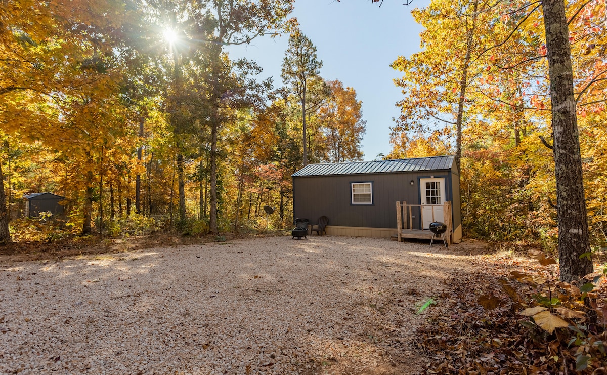 Queen bed,bunk beds, small fridge/microwave, 2 person table w/chairs, private bathroom w/towels & linens. AC/Heat,Coffee pot with the fixings. Guest needs to bring paper plates, paper towels, plastic utensils & charcoal. Picnic table, 17" tabletop Blackstone flat top, w/propane, BBQ grill & fire pit outside each cabin. Perfect combo of camping & cabin life. PETS ALLOWED, prior approval needed. Fee of $25 per day/per pet. Fee is collected upon check in. Owner, dogs & cats lives on property.