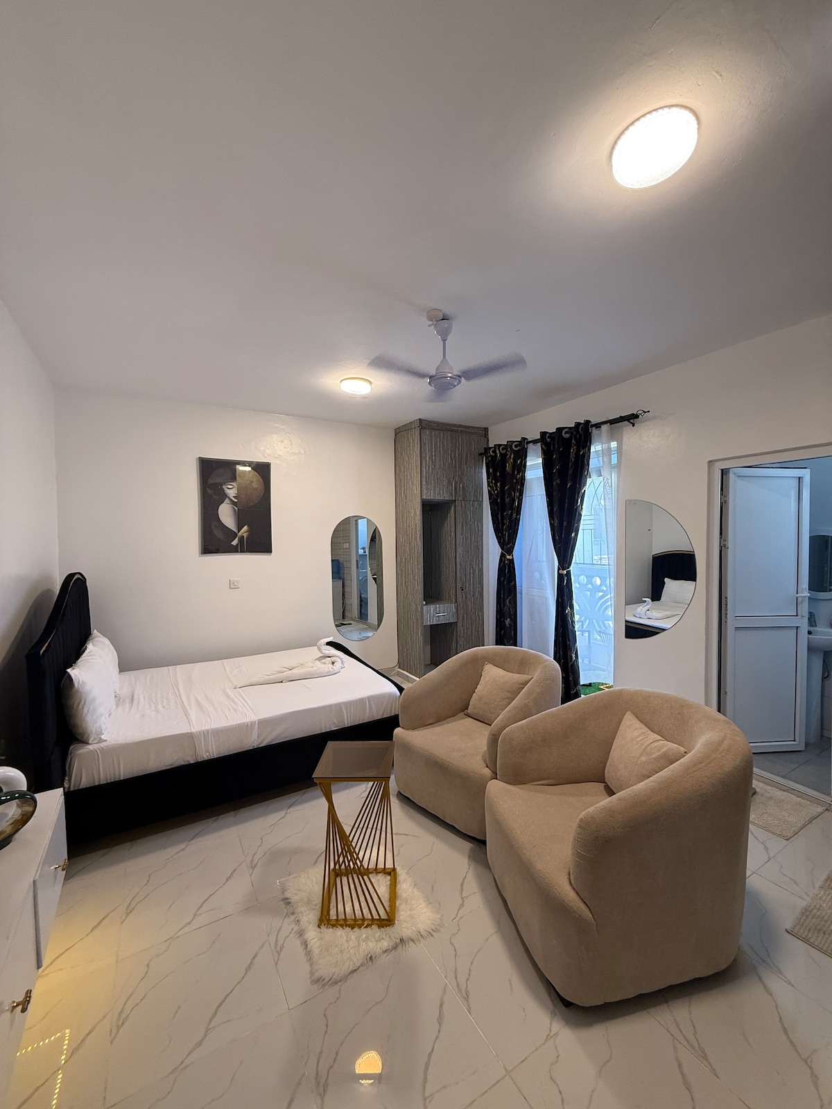 Escape to the coast and experience Mombasa like a local in this cozy, affordable studio tucked just minutes from the beach. Thoughtfully furnished with locally crafted materials from carved Swahili woodwork to handmade sisal this space offers a warm, authentic taste of coastal Kenya. This studio is a perfect blend of comfort and culture. Ideal for solo travelers or couples looking for a true Mombasa Experience. This charming hideaway is the perfect base for your Mombasa adventure!