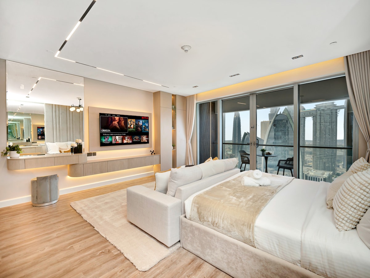 Welcome to your state-of-the-art 1BR retreat in SOUK AL BAHAR right in the middle of iconic Burj Khalifa & Dubai Mall, where modern elegance meets tranquility. This uniquely designed space blends peaceful ambiance with chic sophistication, perfectly aligning with our UDH Boutique Signature line. Enjoy a stylish, fully equipped home with breathtaking skyline views, premium amenities, and a serene yet luxurious atmosphere - all in the heart of Downtown Dubai. Book your stay now!
