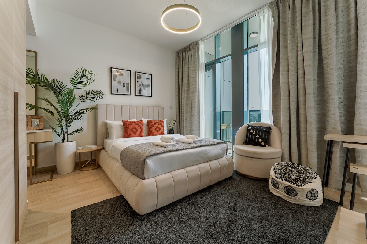 This two-bedroom haven is light and stylish, and it's conveniently located near Dubai Hills Mall. For business trips or leisurely getaways, this tranquil sanctuary in a prime location with first-rate facilities is perfect for your stay. Its convenient location makes it easy to reach all of Dubai's top attractions, and the airport. Here, in our immaculate, serene environment, we attend to your every need with an air of unparalleled elegance and tranquility.