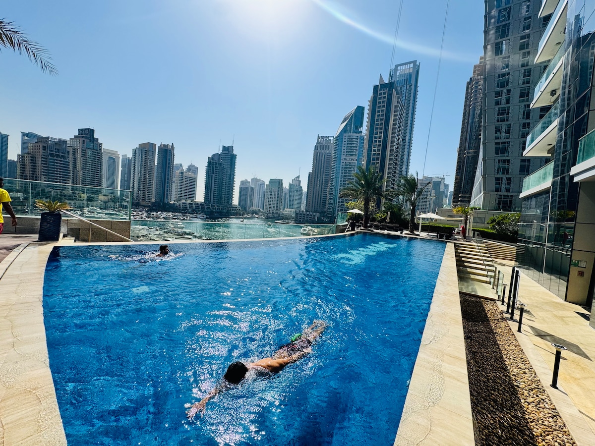 Enjoy the ultimate Dubai experience with our newly renovated luxurious apartment in the 5 star Address Hotel in Dubai Marina. The hotel is located in the center of Dubai Marina, on top of the only Mall in the area. The hotel is modern, sleek, trendy and has everything you'd expect from a 5 Star Hotel in Dubai. The pool is huge, plenty of restaurants, gym, steam room, sauna etc. The mall (accessed directly from hotel lobby) also has everything you'd want. Shops, cafes, cinema etc.