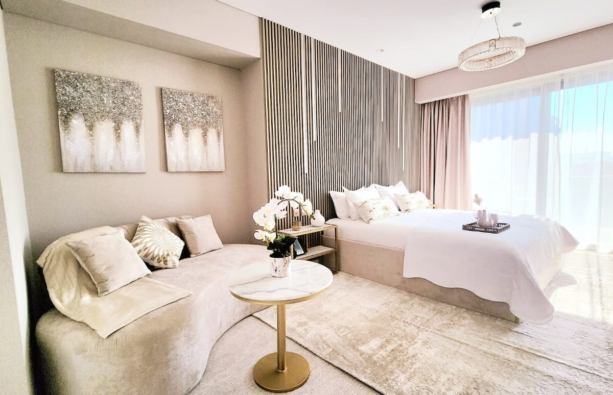 Wake up to breathtaking, world-famous views of the Burj Khalifa from this elegant 1-bedroom apartment, perfectly located in the heart of the city. Enjoy a comfortable and luxurious stay with top-tier amenities, modern Boho decor, and easy access to the best attractions. In the evening, unwind with a stunning sunset backdrop, followed by the mesmerizing Burj Khalifa light show and the sparkling city skyline—right from your Airbnb. Book now for an unforgettable Dubai experience!