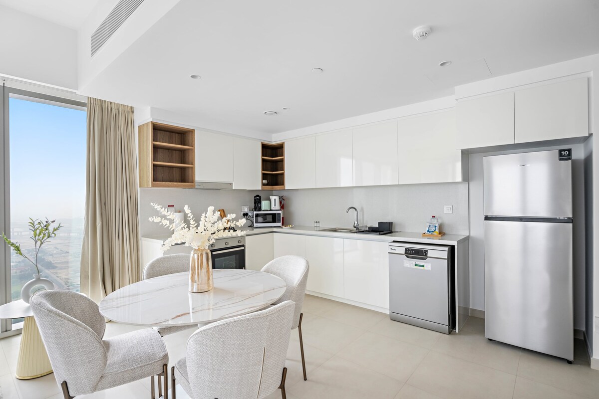 Discover unparalleled luxury in this stunning apartment overlooking the Dubai Creek. Enjoy breathtaking city views from your private balcony, and indulge in premium amenities including a fully equipped kitchen, fresh linens, and 24-hour concierge service. Perfect for families, couples, or anyone seeking a sophisticated retreat in the heart of Dubai. Experience the epitome of comfort and elegance in this exceptional apartment.