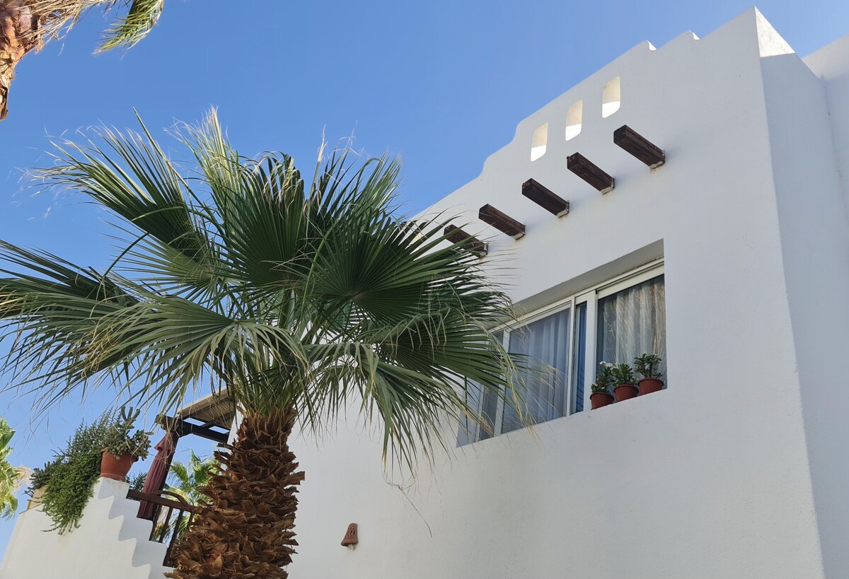 This duplex, brand new one bedroom apartment, located in the heart of Naama Bay, downtown of Sharm Sheikh. With free beach access, 10 min walking. Unique, simple and cozy design, for your perfect holiday. Our guests can also enjoy the roof garden with BBQ and sitting area surrounded by stunning mountain and sea view.
