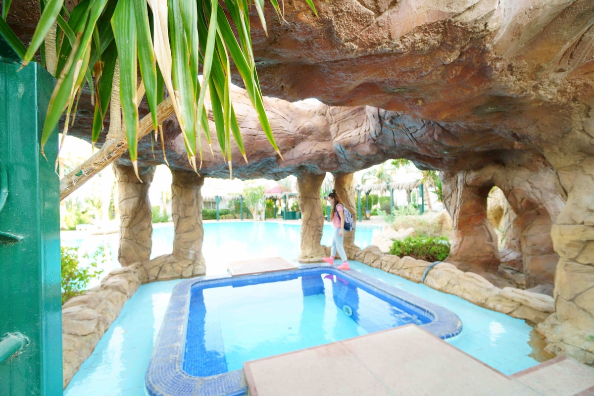Come and experience the best of your vacation at our furnished hotel studio with pool & sea view in Domina Coral Bay Resort (5*) in Sharm El Sheikh It includes 2 single beds, 2 sofa beds, a bathroom, bed linen, towels, a TV, a small kitchen, and a terrace with a mosquito net. A 2 km beach, 7 swimming pools, a 5,000 m Salt Lake, a gym with a sea view, water sports & entertainment. The studio is 9km from the airport, 10 minutes from SOHO Square & Nemaa Bay; Ras Mohd Park is 20-25 km away.