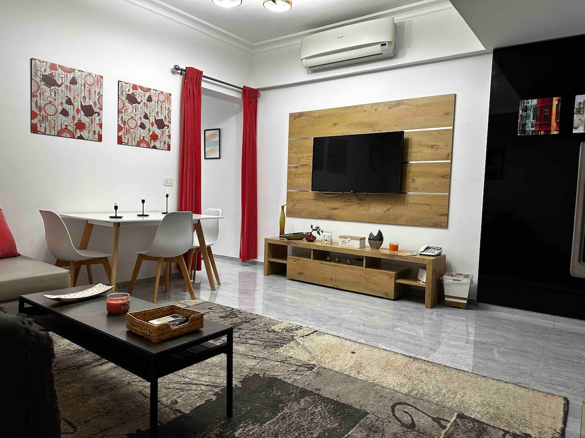 Cozy 1-bedroom apartment in the heart of Hadaba, Sharm El Sheikh. Ground floor with 2 balconies, high-speed WiFi, A/Cs, TV, sofa bed, washing machine, full kitchen. Secured villa with parking. Walk to shops, restaurants, gym, and transport. Close to sandy & coral beaches. Rooftop access with beautiful sunsets. No smoking indoors! Ideal for couples or solo travelers seeking sun and relaxation.