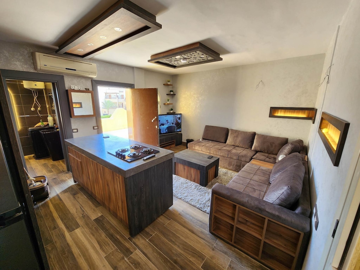 Amazing one bedroom apartment in delta Sharm Resort with private entrance,very closed to shops,pools and the Resort entrance. 3 km from Neama bay and 2 km from old Sharm. Large terrace with a wonderful tropical garden view .the apartment has a king size bed in the bedroom and a sofa bed for 2 persons