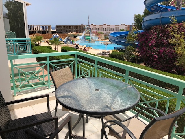 Studio apartment Located in the luxury 4* Panorama Namaa Heights in nice quiet and safe area, not far from evening entertainment. First Floor , Swiming pool &Aqua full View and partial sea view It has been fully refurbished to meet European standards. The Hotel has 2 swimming pools and Aqua , restaurant, cafe and other facilities . Panorama Namaa Heights is about 5 min walk . away from the popular tourist area of Naama Bay and 10 min. from airport . plus 20- 25% discount on a restaurants