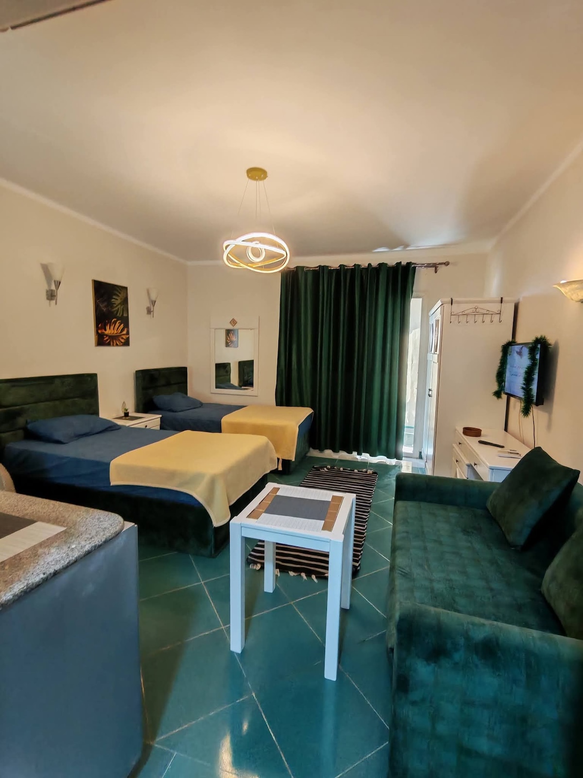Splendido monolocale vista piscina al piano terra con ingresso indipendente in una posizione ottima vicino a tutti I servizi e all'ingresso del Resort. Monolocale dotato di tutti i comfort, schermo da 65 pollici, cuccina attrezzatissima e tutto ciò che serve per passare una vacanza meravigliosa a Sharm