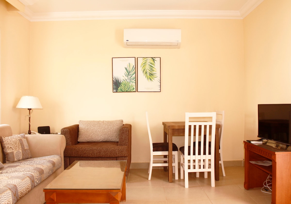 Fully equipped and furnished with 5 stars level, the apartment is located in a nice Tropitel Naama Bay Resort. It's just a few minutes walk from the famous Naama Bay shopping center, in a guarded quiet resort environment away from nightlife noise. The largest shopping mall Genena is 6 min away. Fast 5G WiFi available. Renovated with new furniture, refrigerator, microwave and new air conditioners. Contact and book only through Airbnb.