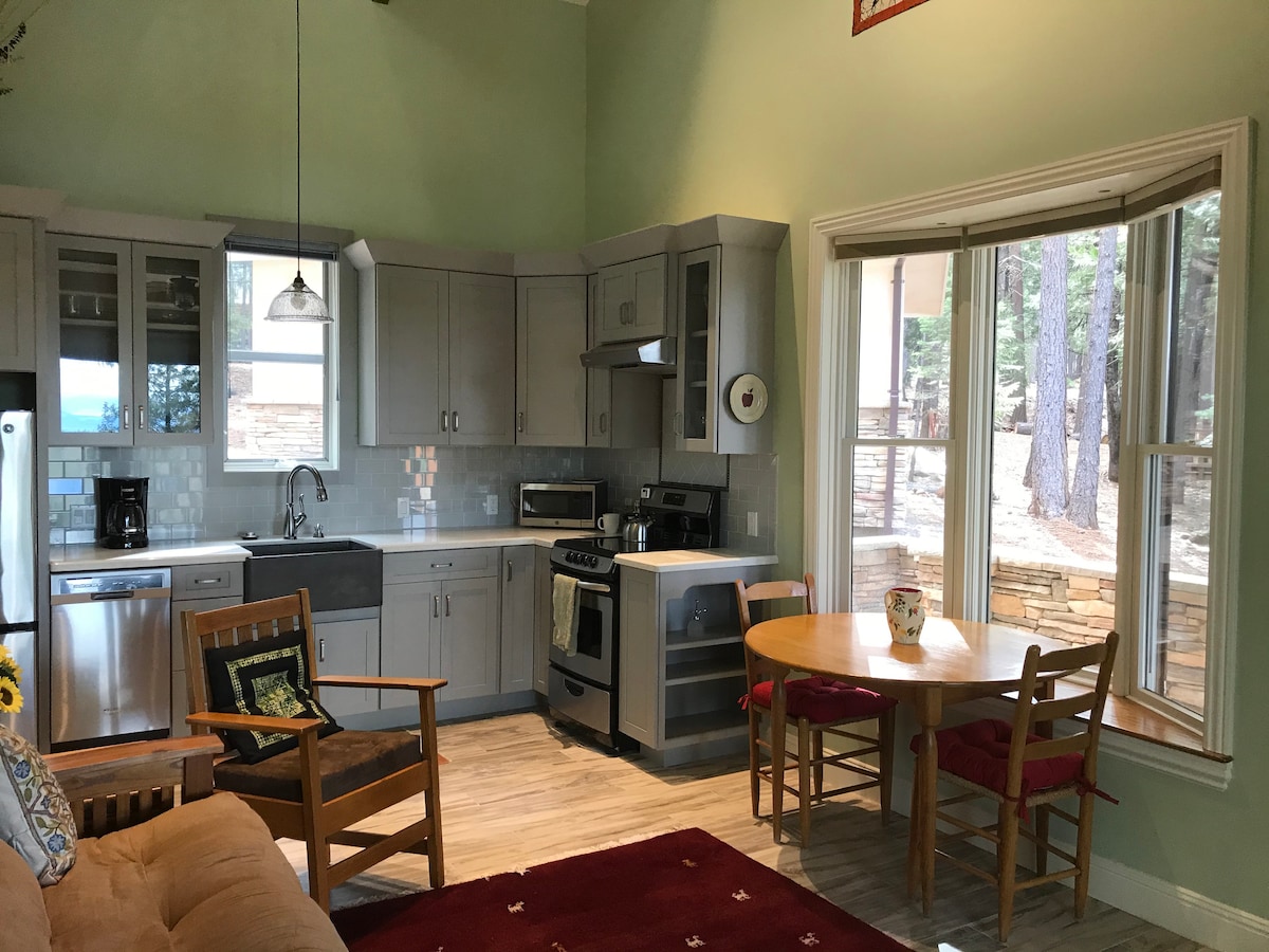 This cottage is the perfect place to relax after a day of exploring nearby lakes, waterfalls, and mountains year around. The cottage is cozy, comfortable, clean, and inviting. In the forest near Lassen Volcanic National Park, you'll enjoy the mountain views! Deer, wild turkeys, and squirrels provide endless entertainment. In the summer you'll enjoy relaxing on the porch. Winters will find you enjoying sitting by the fire taking in the view from our large picture-perfect windows.