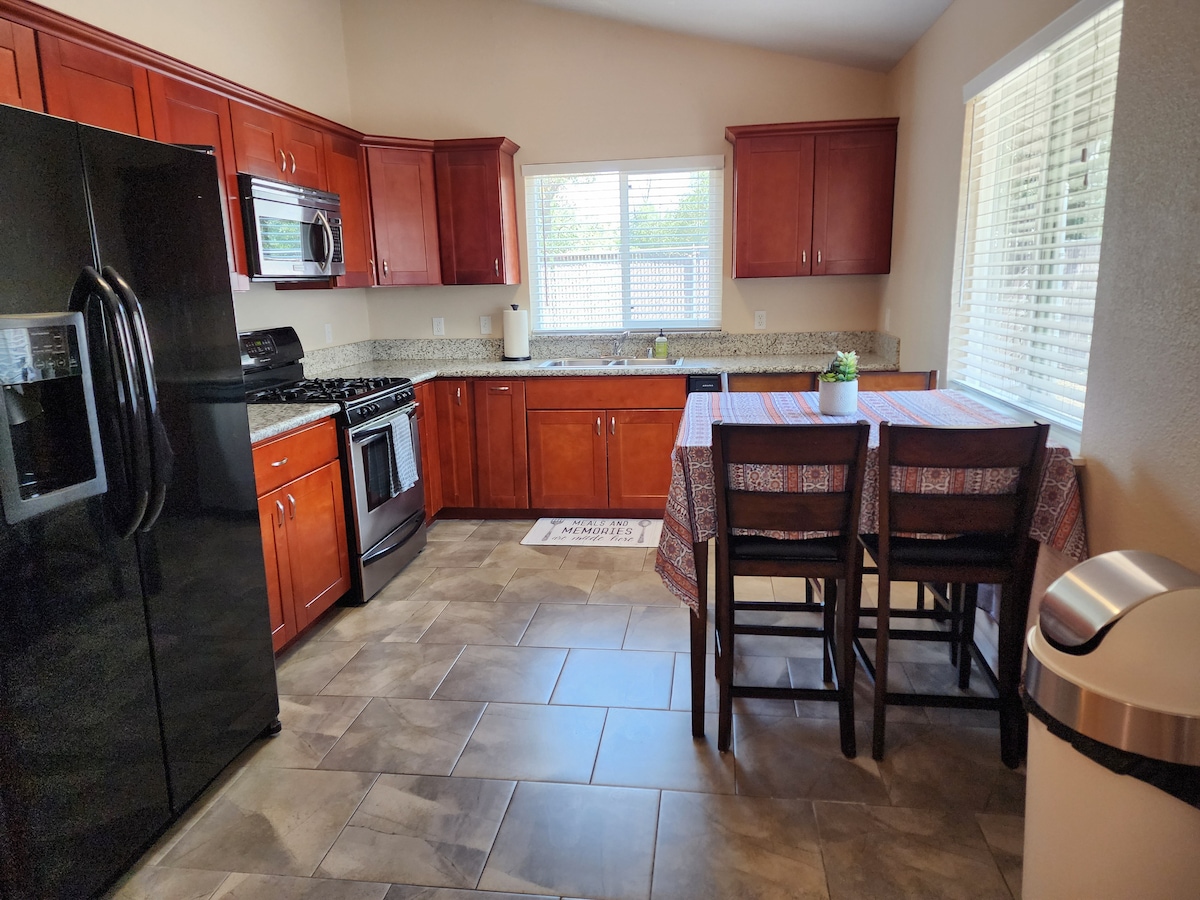Pineland Place is newly remodeled, spacious 3 bedroom, 2 bathroom, 1850 square foot house. It is located in a safe and convenient neighborhood that is less than a mile from Costco, Target, In & Out….all the good stuff. It is also a few minutes from Interstate 5 and Highway 44. There is a spacious kitchen and dining room with lots of stunning counter space to accommodate food, family, fun, and friends! Pets are welcome, but please keep them off the furniture. Fully enclosed back yard.