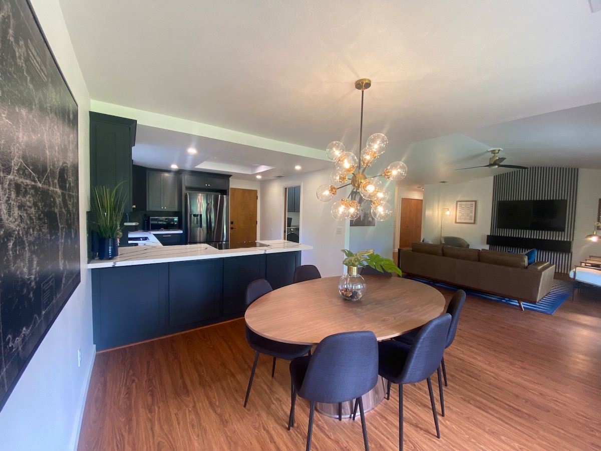 Are you looking for a family vacation? A perfect romantic getaway or honeymoon? A trip with friends or solo? Whatever your plans, The Great Escape is calling your name! Just a mile away from the river, botanical garden, picnic areas, city park and downtown. This 2-story stylish, cozy mountain house offers sleeping up to 4 guests. Listen to some vinyl record while you play air hockey or darts downstairs, relax on the swing with your favorite book or hang out on the deck among surrounding cedars.