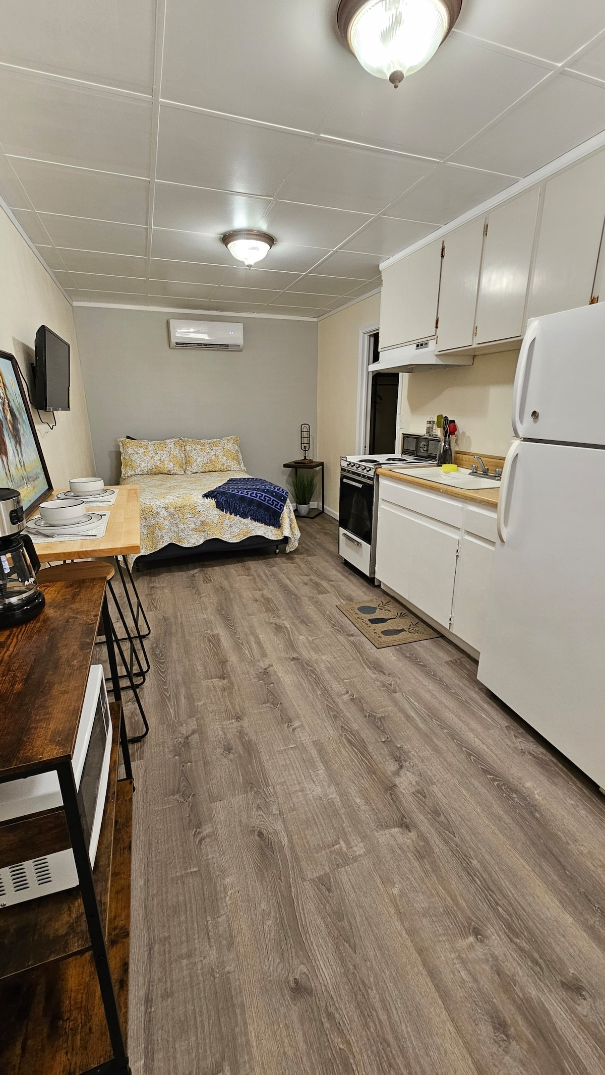 Find style and comfort in this new construction cottage. Queen bed is a comfortable Sealy. Pullout sofa is a Queen La-Z-Boy Tempur-Pedic. Recliner in living area. Cotton sheets with 680 thread count. Twin air mattress available. Fiber internet w/ ultra fast Wi-Fi. Smart TV with Netflix and apps. Black out blinds in bedroom. All blinds top down or bottom up to let light in and have privacy. On demand hot water heater. USB ports on nightstands, lamps and in kitchen.