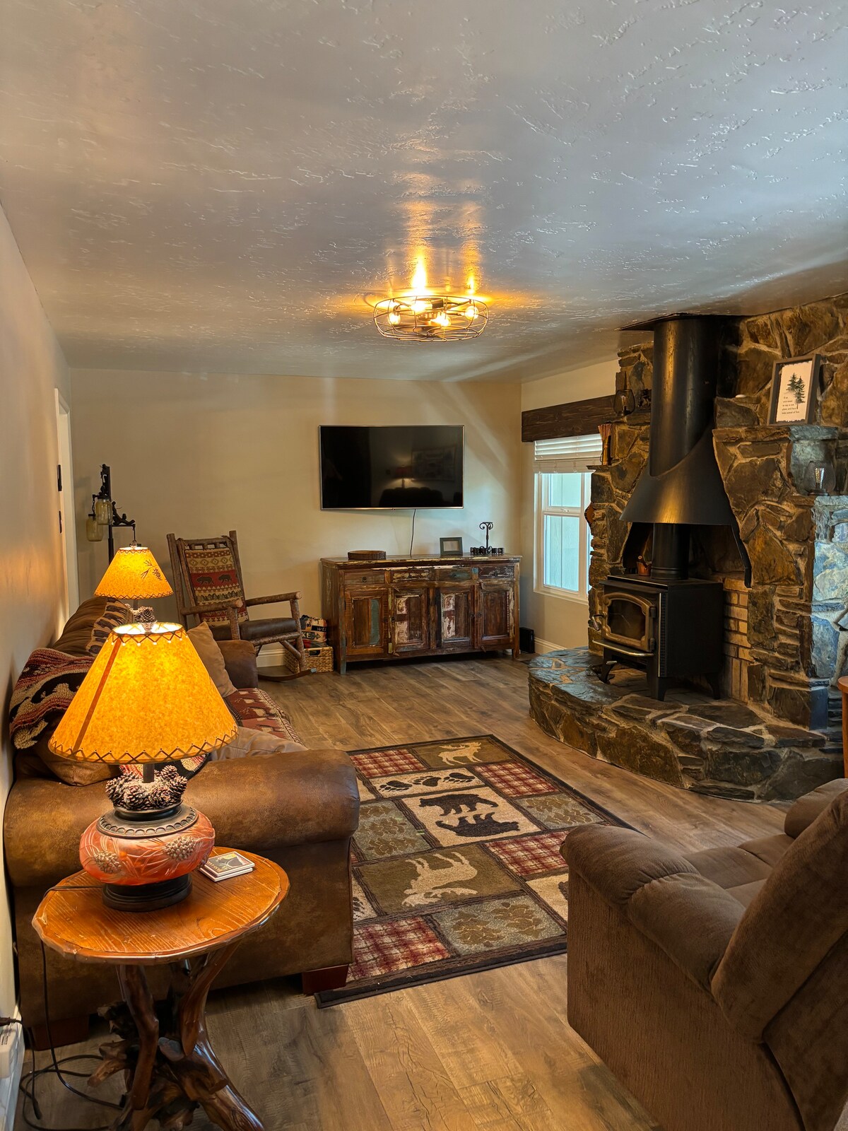 Center of Willowcove with boat slip, a short flat neighborhood walk to the Pines Market, Ducey's and shops. Plenty of parking for cars/boat trailer. No RV's or Travel trailers. The dock is a private key entry dock in Willow Cove - a short walk down the hill. Home has open concept flow connecting to: front deck, side driveway, and game room. Swamp cooler for cooling and wood stoves for additional heating for winter. Propane BBQ, Smart TV's, pool table, Foosball, books, games and puzzles. No PETS