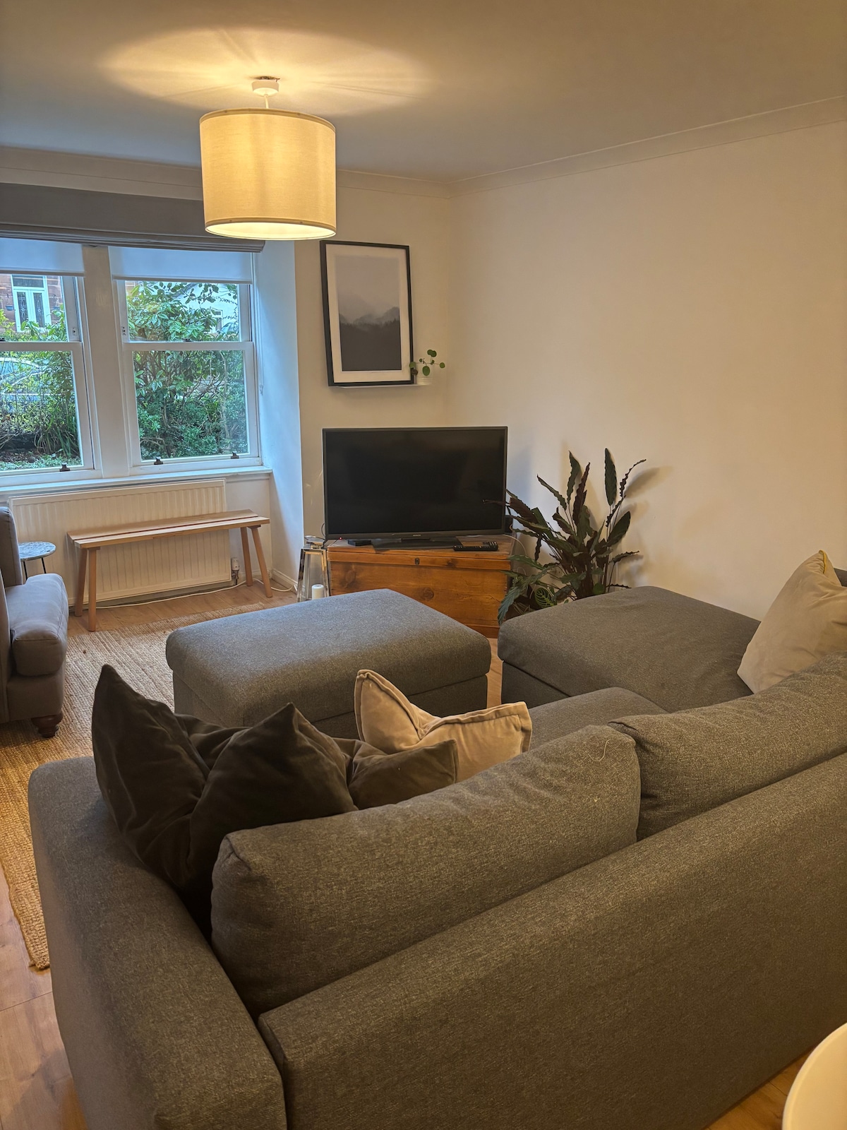This stylish, two bedroom apartment is the perfect base for a visit to Glasgow. It has a large, bright living room with beautiful bay windows and great views. The TV offers a full Sky package and excellent wifi. A separate kitchen/dining space with Nespresso machine, washing machine & dryer means you should have everything you need for your stay. The apartment has excellent transport links and is a one minute walk from 'Pollokshaws East' train station - an 8 min journey to city centre.