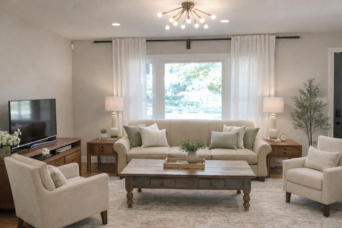THIS house is exactly why you LOVE AirBnb. This fully remodeled ranch home has four bedrooms, THREE full bathrooms, two of which are en-suite with LARGE bedrooms, and the entire house is less than 20 years old. Each room has a smart TV with SIX total! Cook a meal in our OPEN KITCHEN on QUARTZ countertops without missing any of the conversation. Bring your fur baby to enjoy the fenced in backyard and bring EVERYONE to enjoy the two living spaces and over 2000 finished square feet of this home.