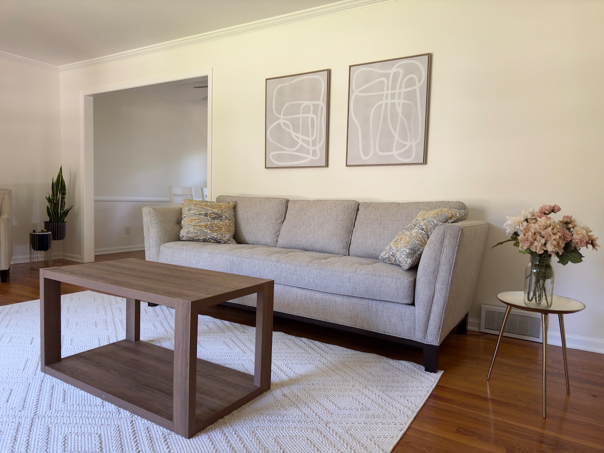 Unwind at this art-filled, newly renovated townhouse minutes from restaurants, shopping and entertainment. Two king bedrooms with smart TVs make for a great getaway for two couples or a small family. Enjoy the fully-equipped kitchen or grill on the private patio. The basement serves as a lounge and office space and is equipped with a TV, sofa, desk, laundry room and full bath. Walk to the community pool or hit the courts for a game of basketball, tennis, or pickleball with provided equipment.
