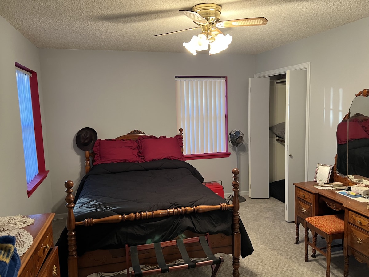 1 King Bed. 1 Twin air mattress roll away (plz req rollaway) Washer/Dryer for your personal use. Fast Wi-Fi Fiber. Sep. fenced off backyard area with Private entry into your basement area that is located around the back of the main house. Parking space on property. Dog park, walking trails. Restaurants close by. Close to highwy, gas stations and shopping. We also have Solar panels that provide some back up for the heat/air and refrig if electricity goes out!!!