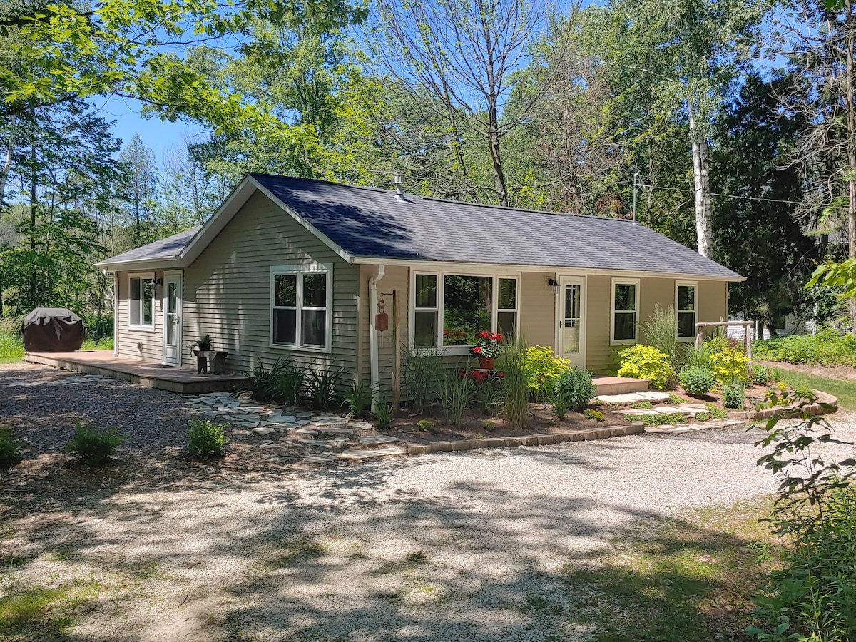 Beautiful view and sand beach on Lake Michigan, completely private, surrounded by mature white pine trees and cedar trees. The spacious home is fully equipped with an "eat in" kitchen, dining room, and living room entertainment space, den with a see-through log-fired fireplace, screened-in porch to accommodate additional eating space, large outdoor deck with grill and fire pit. A canoe and a row boat are available for the boating enthusiast, with life jackets and other floating devices.