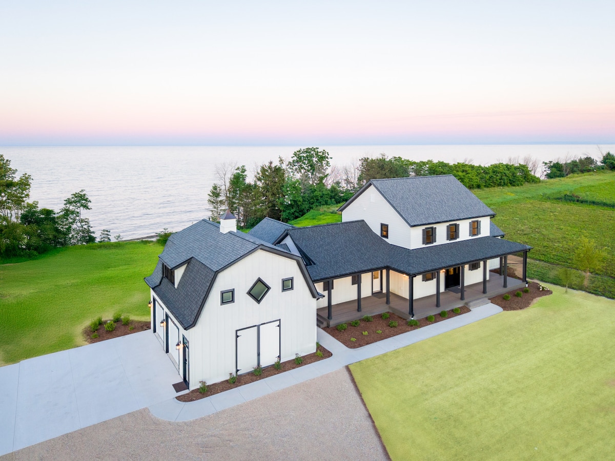 This 2600 sqft lakefront home is a spacious retreat year round, friendly to kids and dogs. It is perched upon a bluff overlooking Lake Michigan with a gorgeous sunrise view. In winter, enjoy passing cargo ships and eagles along with ice formations. Inside, dine with seating and service for 12 after cooking in the spacious kitchen with wood fireplace. Kitchen, living room, dining room and 2 bedrooms have full lake view. 2 large screen tvs. Spa quality bath with whirlpool. Gas fireplace too!