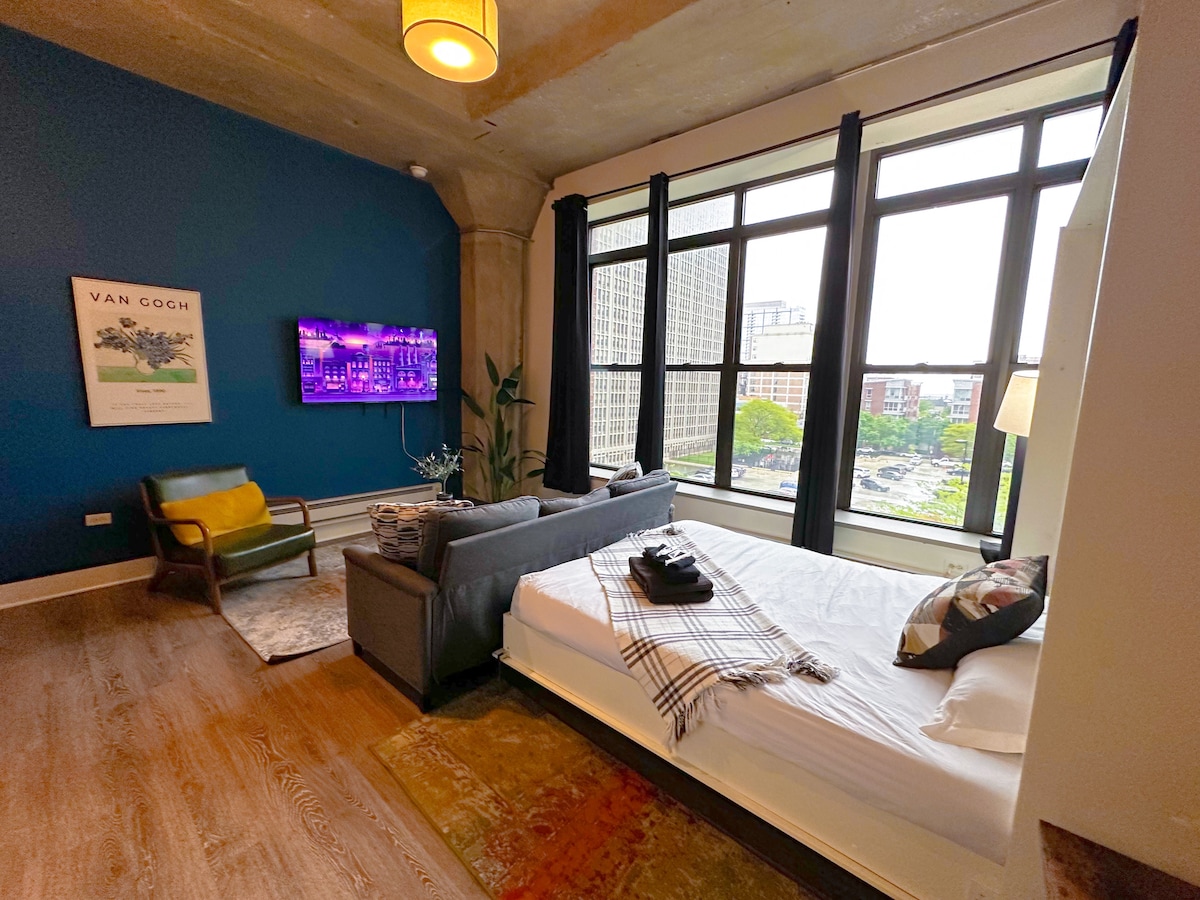 Welcome to your stylish South Loop escape! 🌟 This modern Studio Suite (Sleeps 4) is perfectly located on Michigan Avenue, just steps from McCormick Place and close to Chicago’s top attractions. Whether you're visiting for business, events, or leisure, enjoy stunning city views, high ceilings, a fully equipped kitchen, and walkable access to everything Chicago has to offer. 💌 Message us for special rates and extended stay discounts!