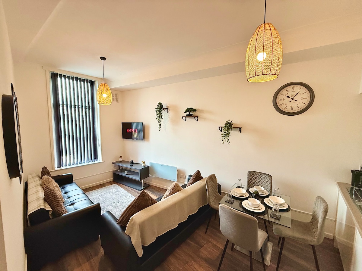 🏠 **Book Now & Save 10%!** Enjoy a Modern, luxury 1-bedroom Apartment in the heart of Sheffield. Ideal for business guests, couples, and extended stays. Discounts: 1 Night ➞ 5% Off 2 Nights ➞ 6% Off 3 Nights ➞ 8% Off 🛏️ **Amenities:** ➞ Free Unlimited Wi-Fi ➞ Secure Parking ➞ Sleeps 3 📍 **Great Location:** ★ 2 mins to Bramall Lane ★ 24/7 Petrol Station ★ Beauty Salon Open 24/7 ★ Chauffeur to/from Train Station 💡 **Work, Relax, or both, Your Perfect Sheffield stay awaits!**