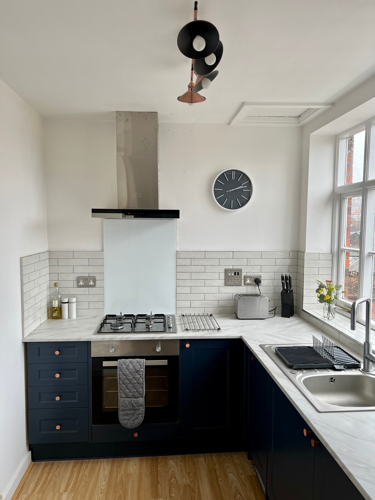 Hotel style feel stay at this central Ecclesall road location. The apartment comprises of 2 double bedrooms, both fitted with king size beds. Walk in shower wet room with remote controlled mood lighting. Fully integrated kitchen that flows into a relaxed living area with smart wall mounted TV, reading corner with dining table and chairs. A stone’s throw from the centre of Ecclesall road. With parks, trendy bars and flavoursome restaurants all at your doorstep!