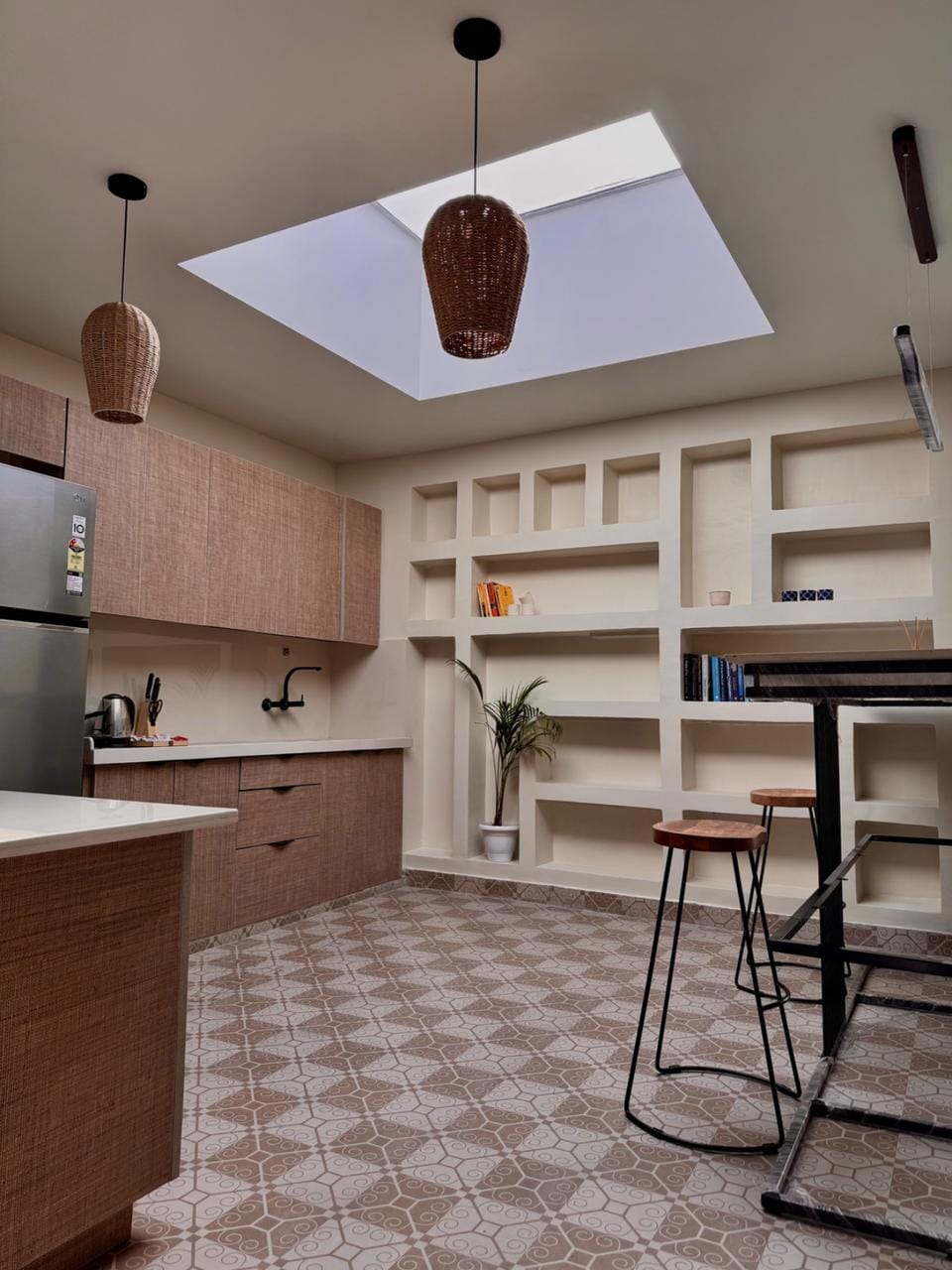 Located in the heart of Jaipur in the charming residential area of Bani Park, the apartment offers a blend of comfort and style. Enjoy luxe amenities like a smart TV, a fully equipped kitchen, fresh bedding, high-speed internet, and in-house laundry with ironing facilities. The muted tones, soft hues, and handprinted floral motifs inspired by the Pink City create a warm, vacation-ready vibe—making it a perfect home away from home during your Jaipur visit.