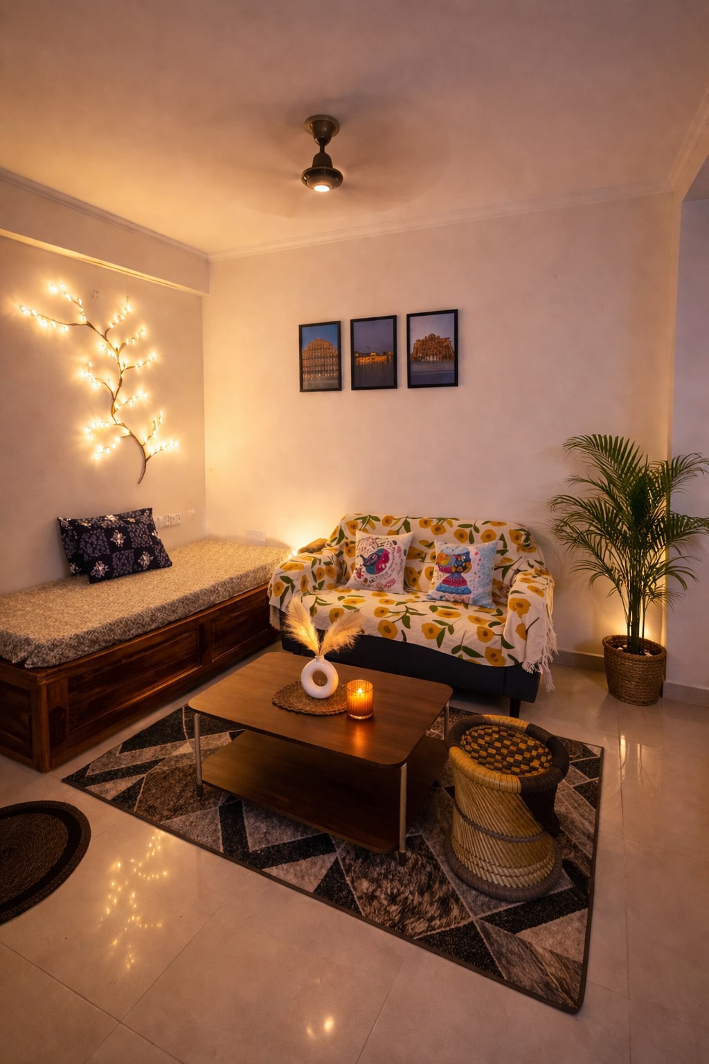 Welcome to Aura Luxe by The Sleepy Monkey. Centrally located 2BHK apartment on Tonk Road, Jaipur, just walking distance from Gandhi Nagar Railway Station and 12 minutes from Jaipur Airport. This luxury flat features a 120-inch projector screen with JBL Dolby sound, creating a private home theatre experience. Whether you want to enjoy Movies, Netflix and Chill, Cricket, Football or anything else - we've got you covered. Ideal for families, business travelers, couples, and small groups.