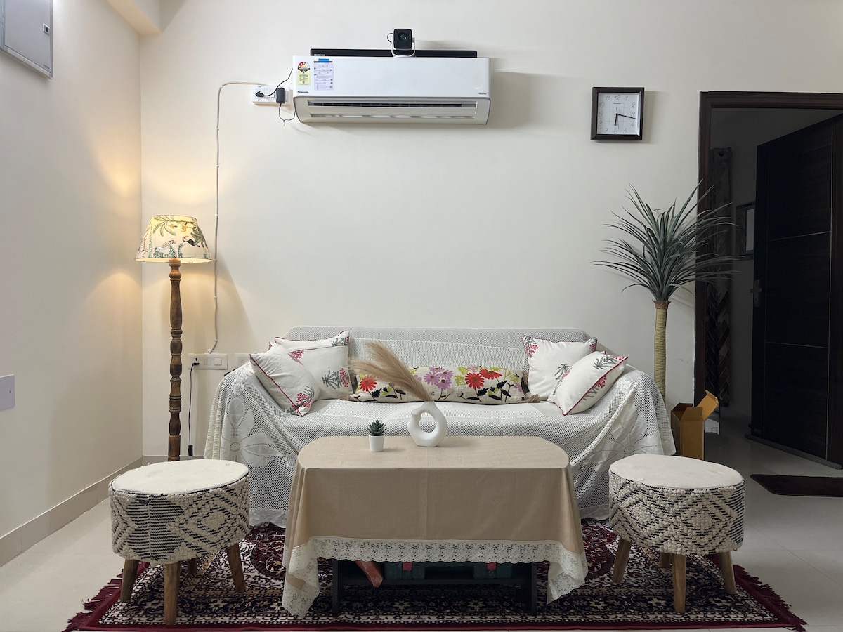 Welcome to Owee Stays, a peaceful Airbnb in Vaishali Nagar, Jaipur. Our minimalist mordern-styled home blends cozy modern design with calm, family-friendly vibes. Safe, secure, and fully pet-friendly — perfect for couples, families, and longer stays. Cozy ground floor unit with a private bedroom, guest lounge, living room, kitchen for light cooking, Wi-Fi, AC, Smart TV, and safety features. Laundry, iron, and hairdryer available on request. Calm and safe for a relaxing Jaipur experience.