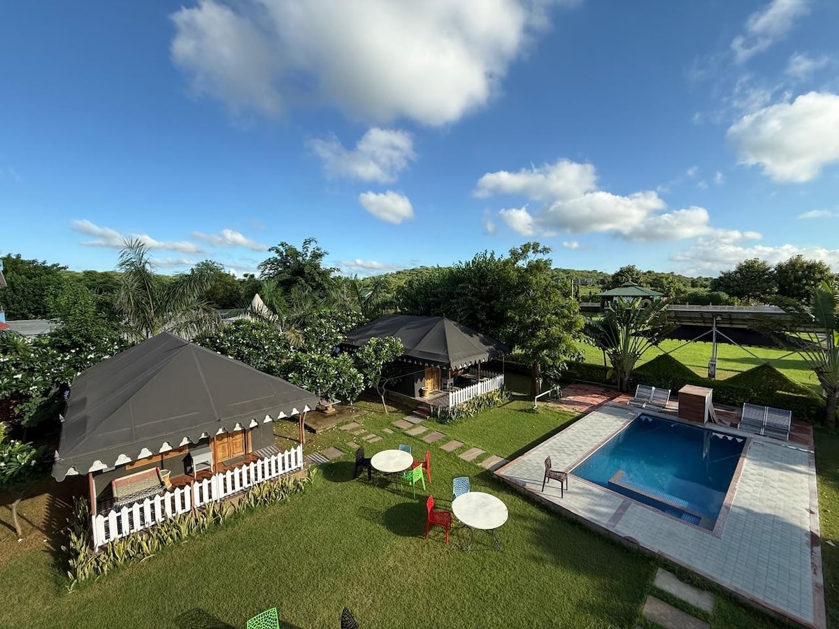 豪华2卧室Jaipur农舍,带私人泳池和花园