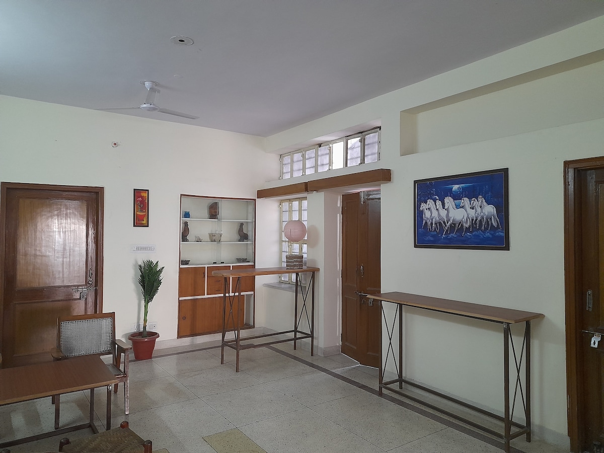 It is an independent house situated in the heart of the city with easy access to all the tourist spots. Surrounded by greenery, every corner of the property has ample open space in the form of a patio, balcony, garden or terrace. Cameras are installed in common areas. We have a caretaker in the property for the maintenance and safety reasons. She has a separate accommodation within the premises. We take family bookings only due to neighbourhood restrictions.