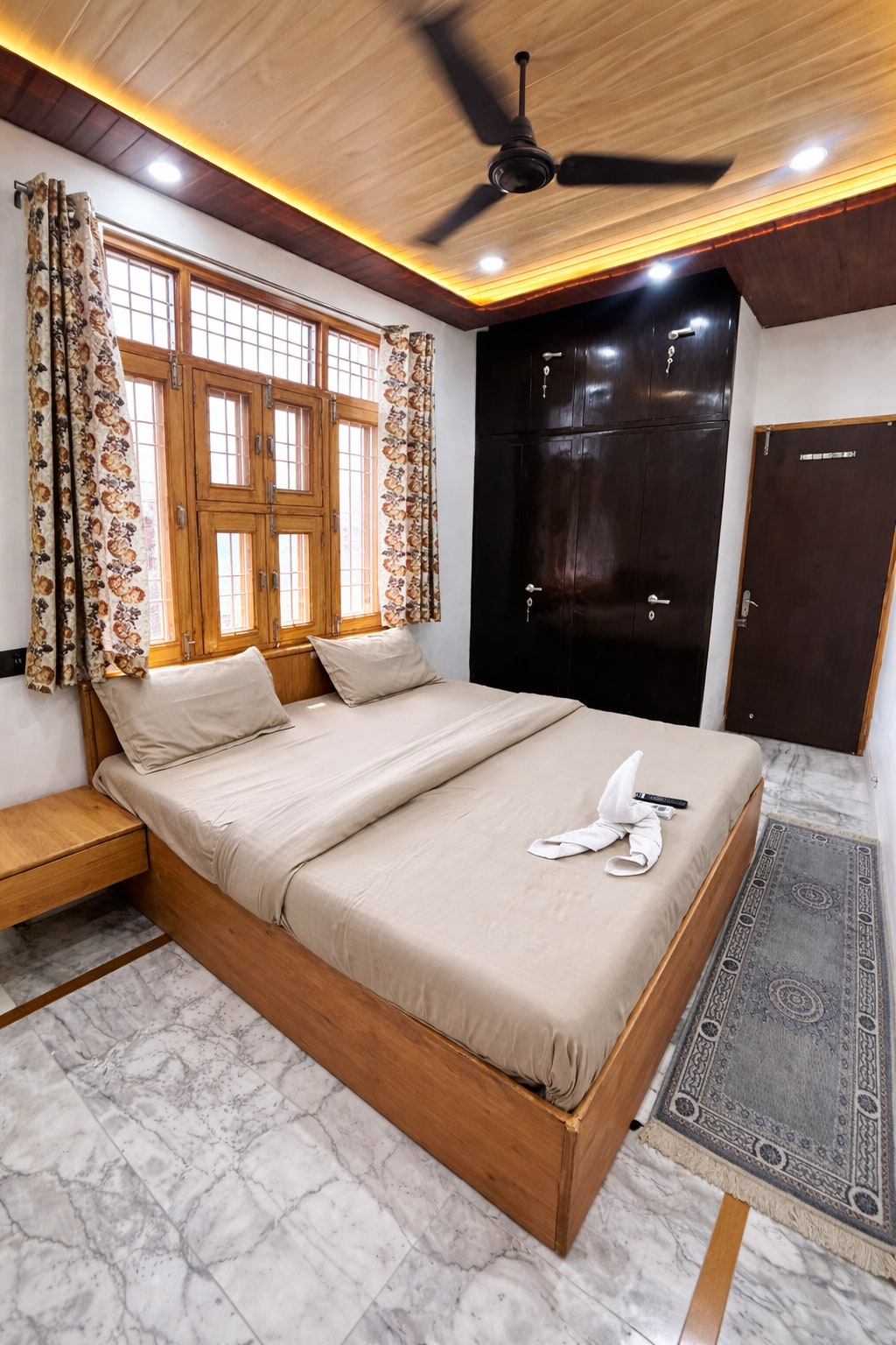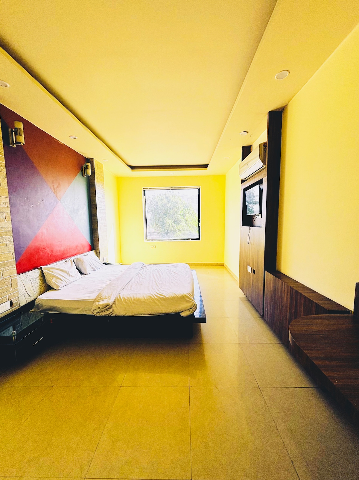 Indulge in the ultimate comfort of our spacious Luxury Double Room, designed for couples, families, and friends. The room features two air conditioners, ensuring a cool and comfortable stay, along with a large, luxurious bathroom that offers ample space and modern fittings. Guests can also relax in the serene outdoor garden, perfect for unwinding amidst nature. With cozy interiors, a plush double bed, and all essential amenities including Wi-Fi, your stay will be both restful and convenient.