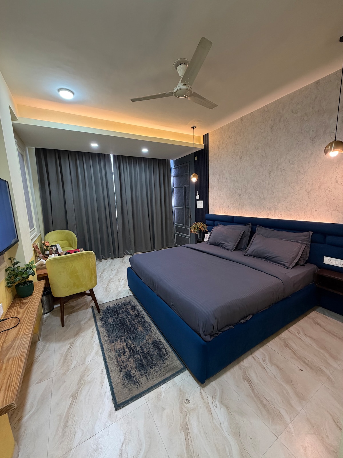 We have 9 luxurious rooms at the same space .You can check them out The Hues, Materials and Interiors are Meticulously selected for a Soothing and Healing Stay. Mangalmayee - a 113 Years Old Lifestyle Legacy Brand - presents a Fine Blend of Elegance and Comfort. Located at the heart of Pink City !