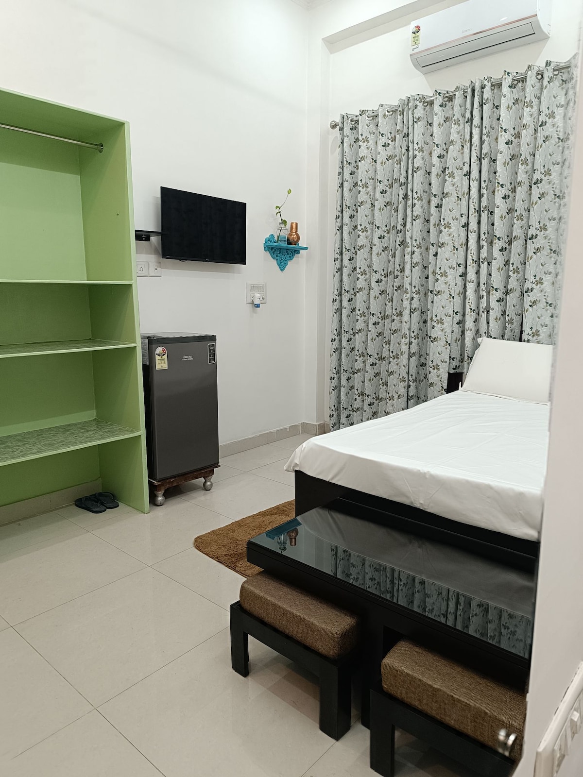 Walkable to the most happening place in Jaipur, WTP and Gaurav Tower. Located just 3.5 kms from Jaipur Airport with a separate entrance, private bathroom, a fridge/toaster/kettle provided, with a workspace, balcony & air conditioning. The room has wooden flooring to provide warmth and comfort. We keep the room sanitized for your safety. Many eating joints nearby provide lunch and dinner. We strive to provide personalized care and warm hospitality without intruding your privacy.