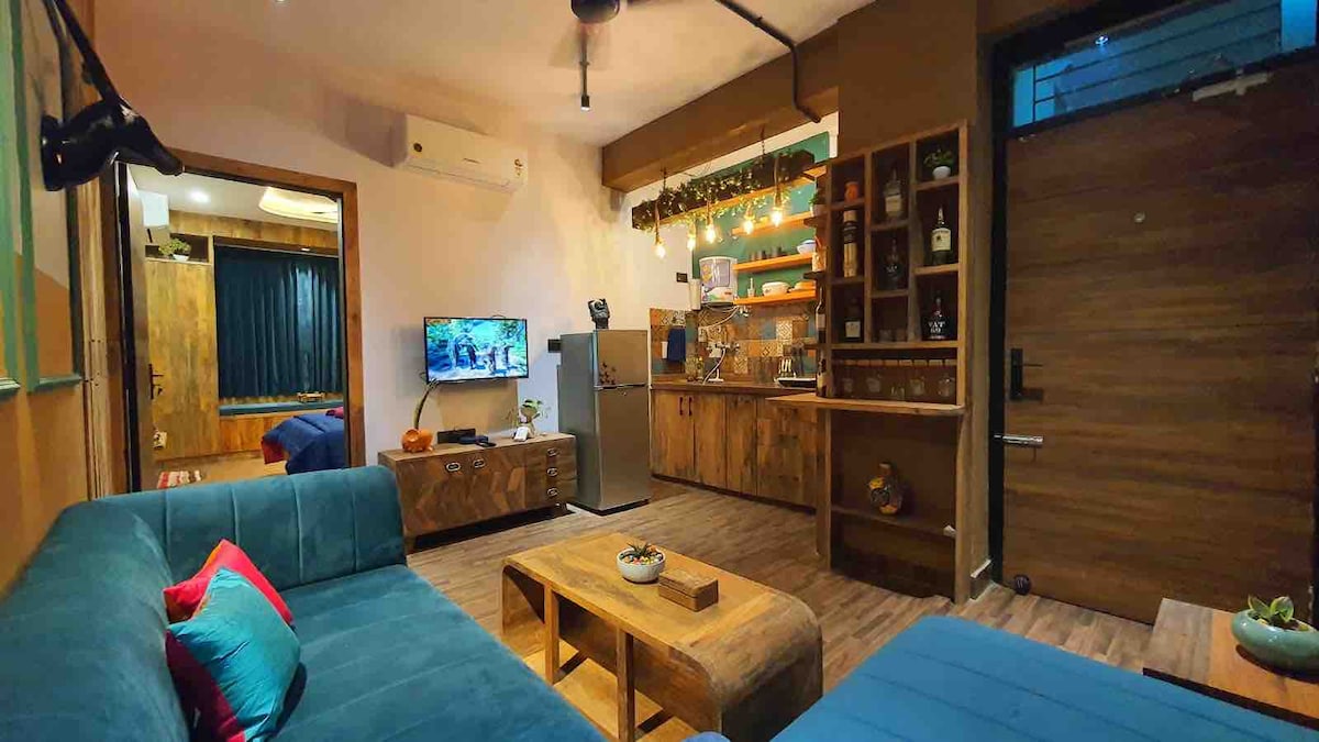 Welcome to Minimint – a stylish studio in a prime central location, perfect for exploring the city. Enjoy stunning sunset views from the standing balcony, relax on the comfy sofa-cum-bed, and stream your favorites on the smart TV with fast Wi-Fi. The modern kitchenette is fully equipped for small meals. Ideal for couples/solos - this compact space is filled with natural light and designed for both work and rest. Experience the best of city living—comfort, convenience, and charm—all in one place