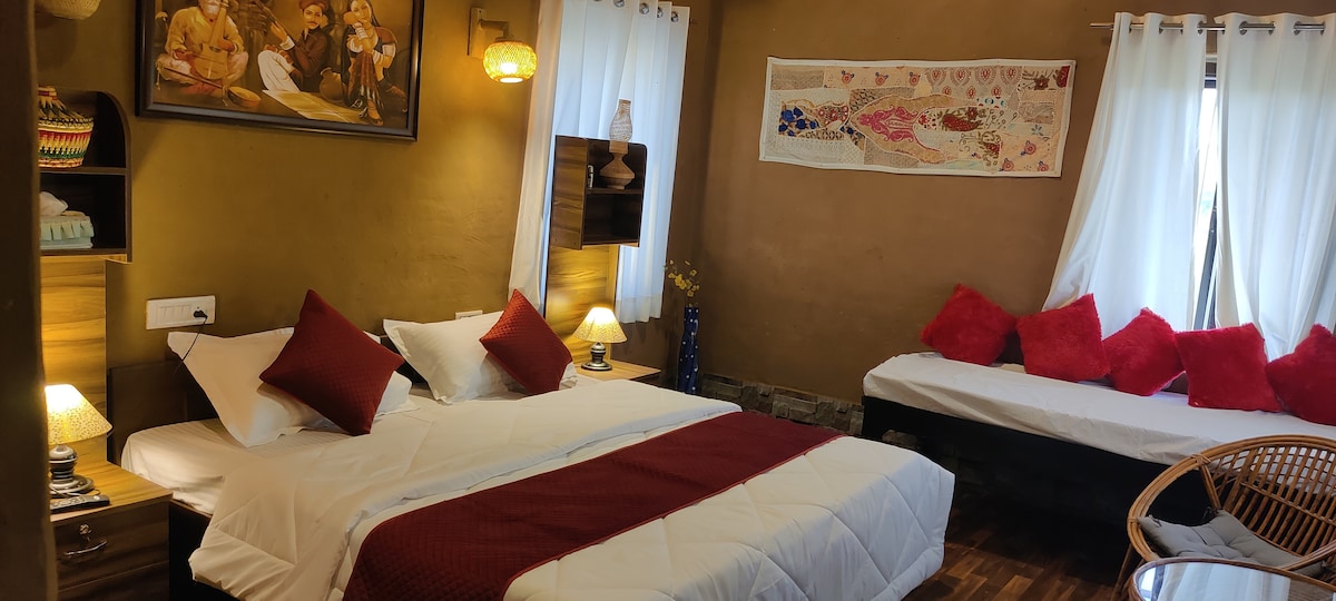 Discover Tathastu Home Stay – a calming & soulful escape in Jaipur. Enjoy serene sunrise views, lush meditation zone (on request and subject to host consent), Rajasthani-styled AC rooms with private baths & a cozy glass living room - barely steps away from eateries, riverfront, parks, and attractions. With modern comforts, cultural charm, and tranquil vibes, Tathastu offers a unique stay for those seeking authenticity, relaxation & a true Jaipur experience with easy connectivity to iconic stops.