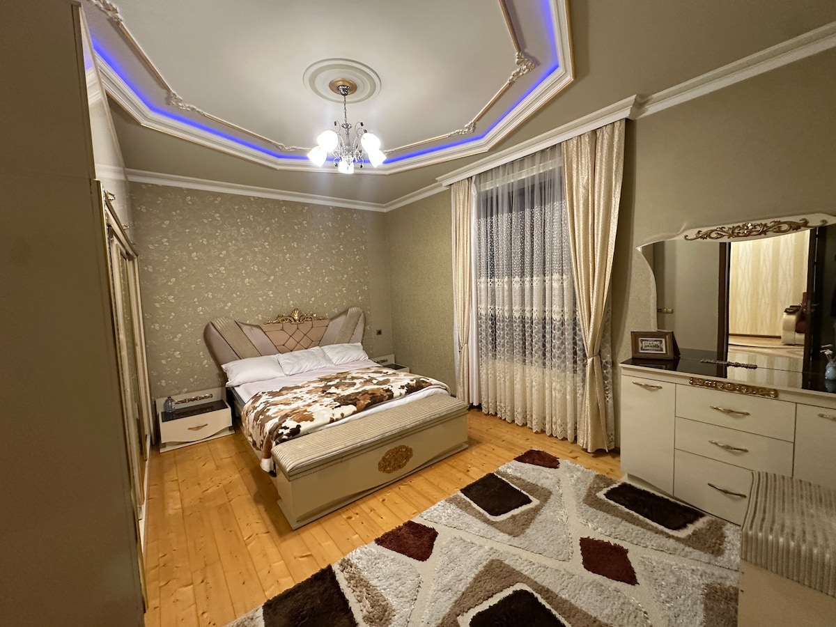 Welcome to Sheki Bey House! Our spacious villa and private garden offer the perfect family retreat in Sheki. The Space: Enjoy 3 large bedrooms and a premium bathroom featuring a Jacuzzi (Hot Tub) and Turkish Hamam for ultimate relaxation. Outside, relax on the patio with a traditional Samovar or cook a BBQ (Manqal) while kids play safely in the large garden. Access: The entire house and garden are yours—100% private. Clean, peaceful, and family-ready!