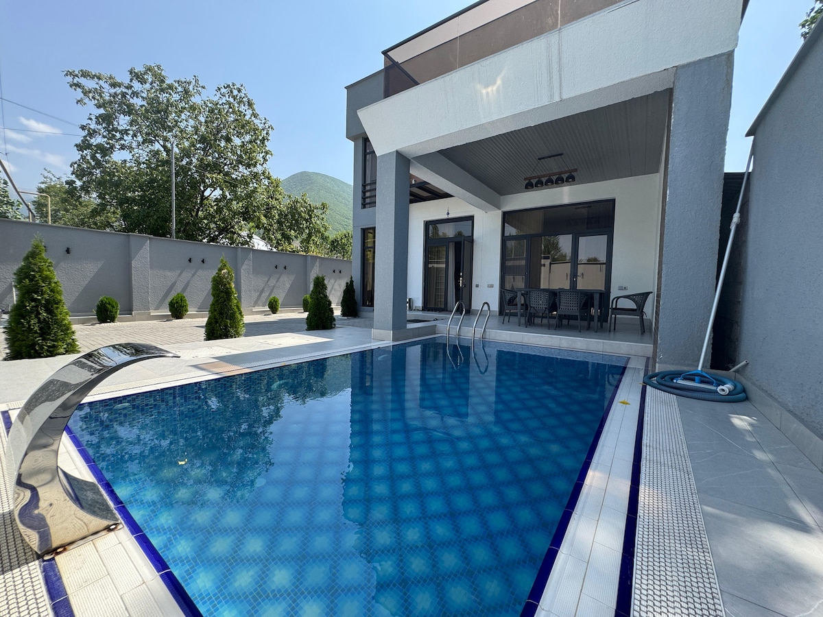 modern Villa Şəkidə Marxal yolunda yerləşir. 4 yataq otağı, 1 zal, 3 sanuzel. 11 nəfər rahat qala bilər. Rahat istirahət üçün hər bir şəraiti var. Dağa, çaya panoraması var.