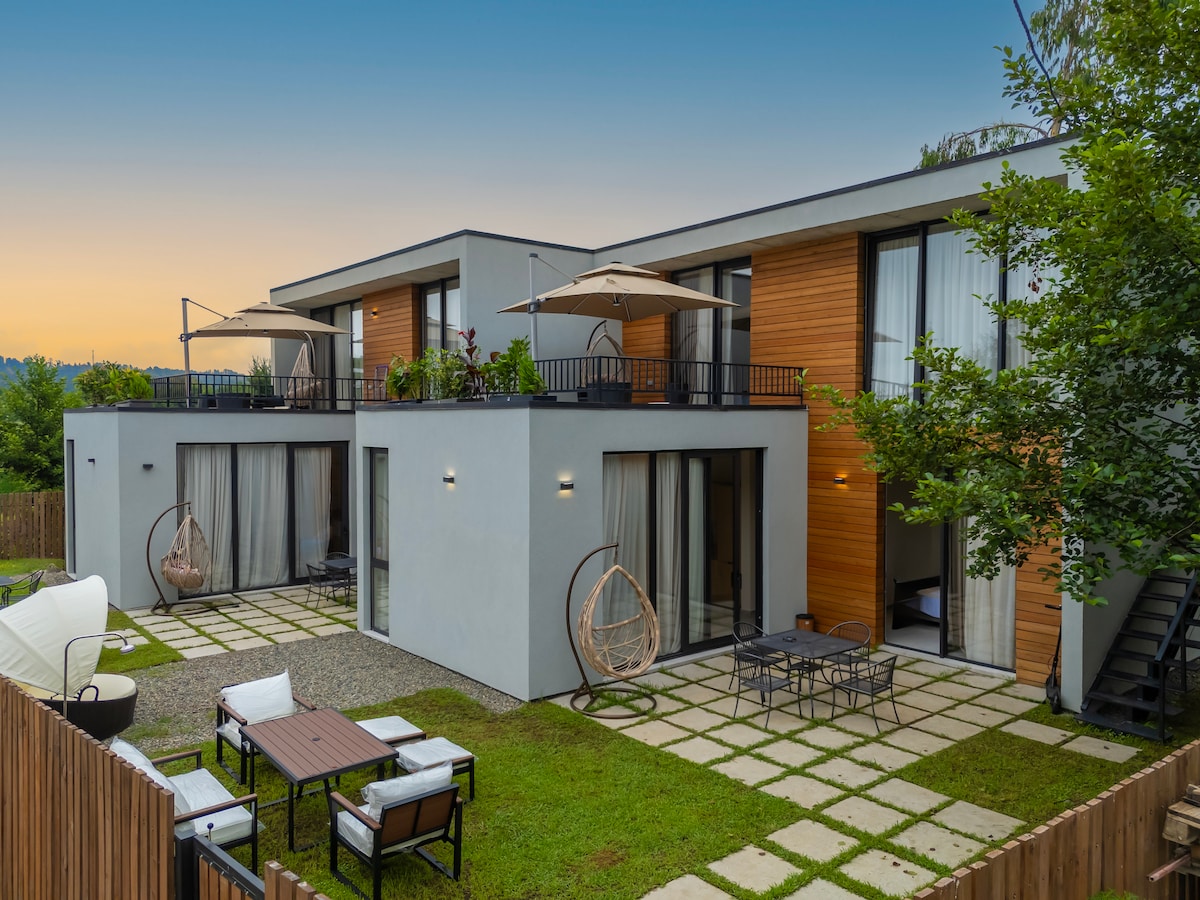 Ваша собственная вилла с бассейном! Вилла расположена в тихом пригороде Батуми - Чакви. На территории закрытого комплекса — бассейн, парковка, детская площадка. Ближайший пляж - в пешей доступности. На первом этаже — просторная гостиная, кабинет, гардеробная и туалетная комнаты. На втором - гостевая спальня, большая спальня с ванной, терраса, туалетная комната. По запросу мы готовы предоставить детскую кроватку, дополнительные спальные места возможны на диванах в кабинете и гостиной.