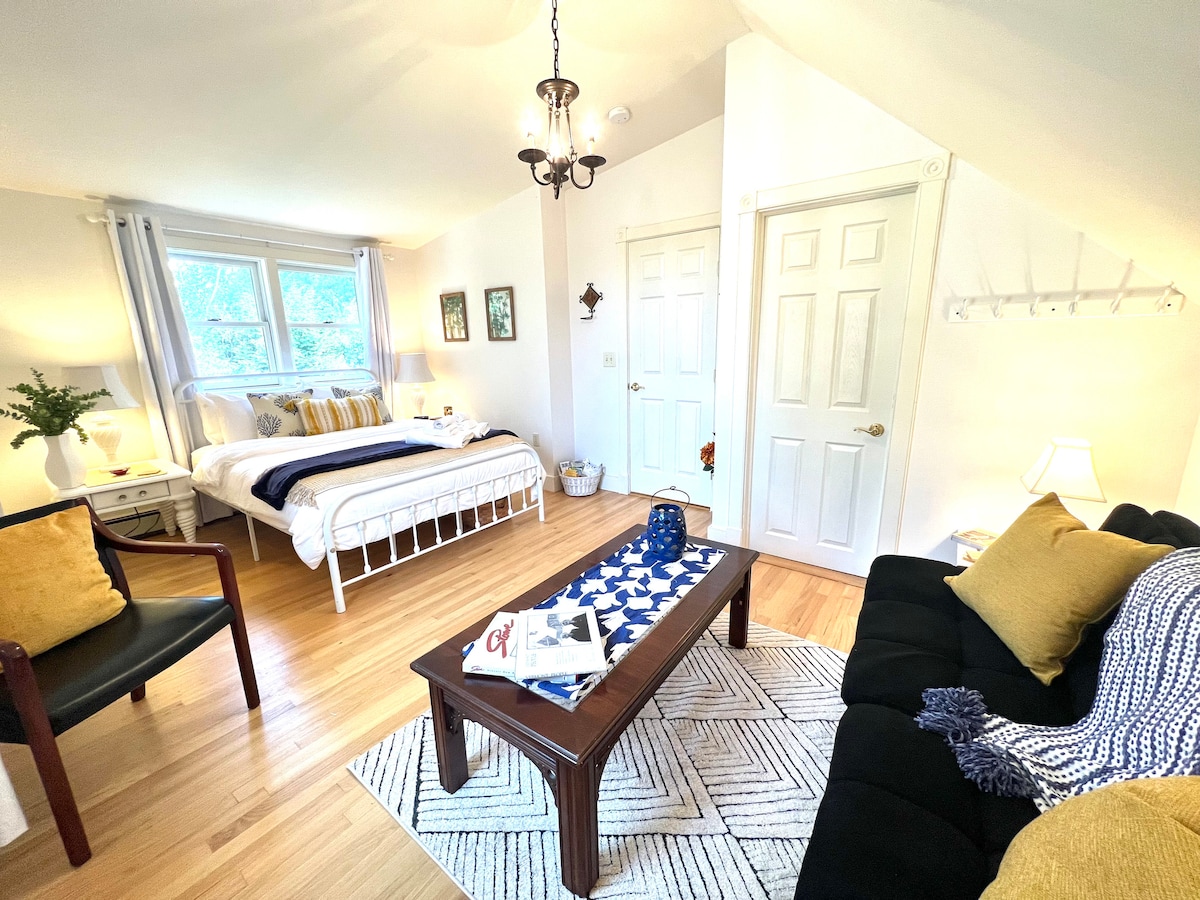 Unwind in a charming studio retreat ideally located in Shelburne Village. Peace and privacy on the edge of the nature preserve overlooking the LaPlatte River. Perfect for travelers visiting the Burlington area. 9 miles to downtown BTV. Gorgeous space with lovely furnishings. Super comfortable bed and leather seating. Private entrance. Compact kitchenette. Dedicated workspace and high-speed internet. Dog friendly. A/C for the occasional hot summer day. Miles of trails steps from your front door!
