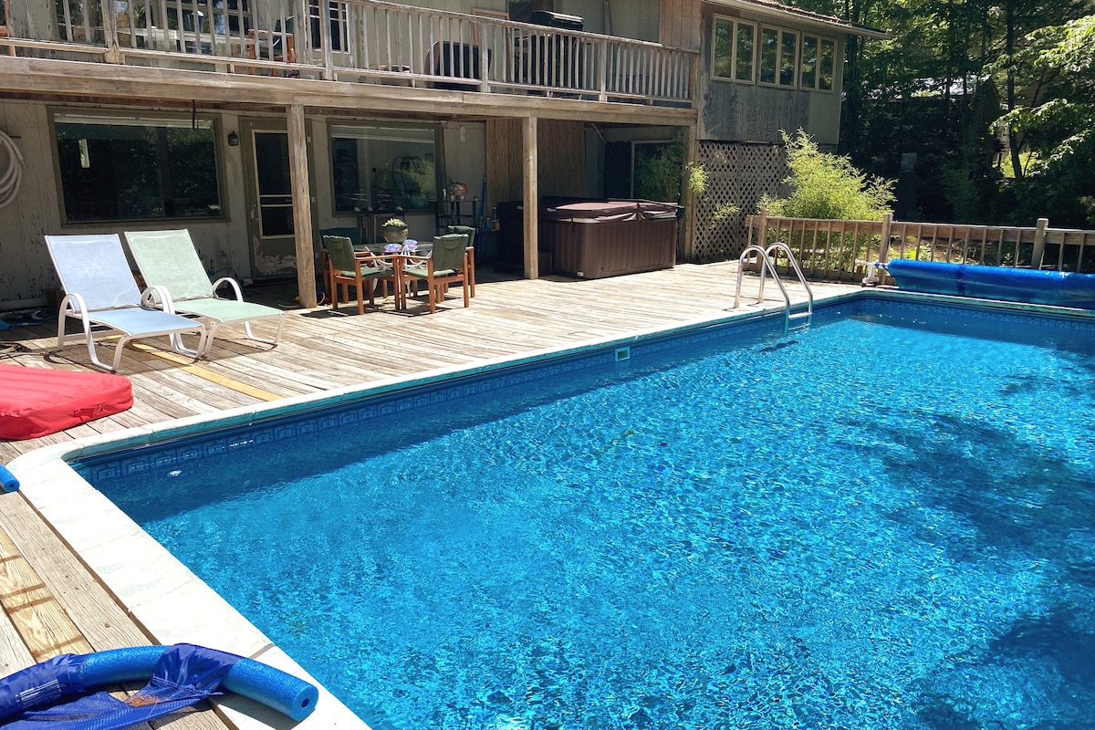 宽敞的阿迪朗达克度假屋• 6卧室,带加热泳池
