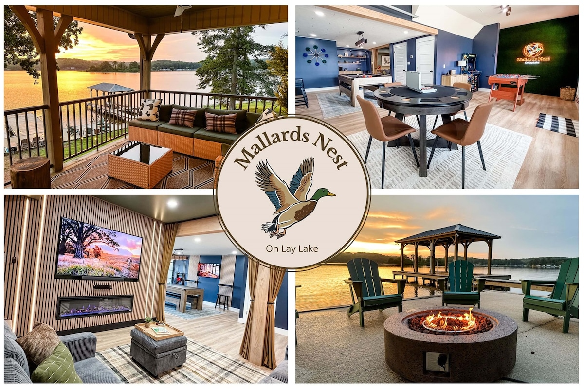 Lake Season is Calling at Eagles Nest on Lay Lake! Stay at this one-of-a-kind 3BR, 2.5BA octagon lakefront home sleeping 12 with 102' of private shoreline, dock, kayaks, paddleboard, outdoor kitchen, and lakeside firepit. Perfect for spring break, summer lake weeks, fall weekends, weddings, or girls/golf trips. Swim, boat, float, fish, and unwind with panoramic sunset views, hammocks, and space to gather. Summer dates are filling fast. Book Today!