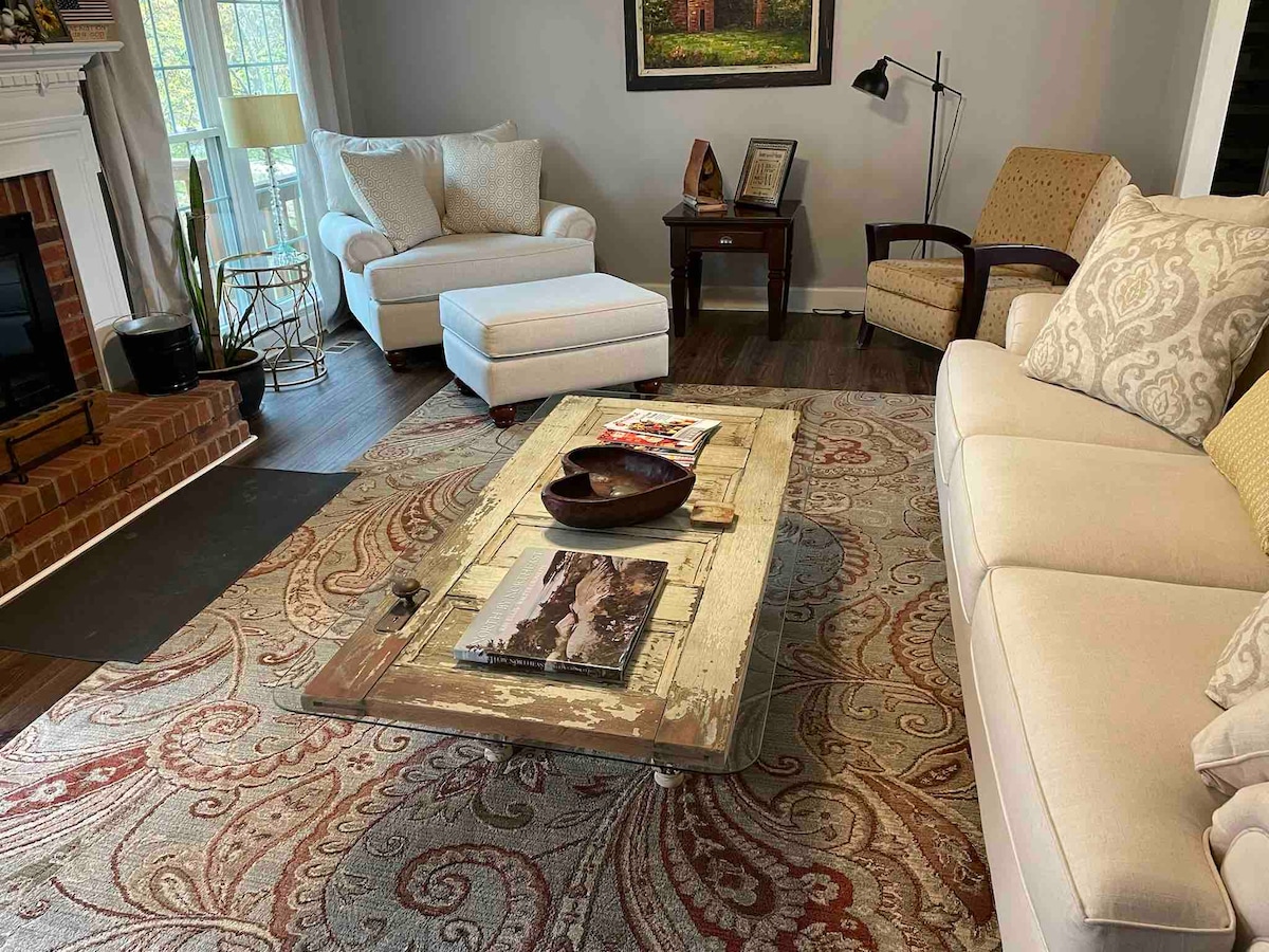 Kick back and relax in this calming bedroom space. Nestled in the back of a super quiet and safe neighborhood with only woods behind the home. Centrally located to both downtown and Hoover. We are 15 min from the Hoover Met. We are also close enough to Tuscaloosa for game day. We are 5 min from the Renaissance at Ross Bridge , RTJ Golf Course , The Barn at Shady Lane, and RideBHM. Approx. 20 min to most hospitals in the area. A grocery store is also just a few minutes away. Also dog friendly.