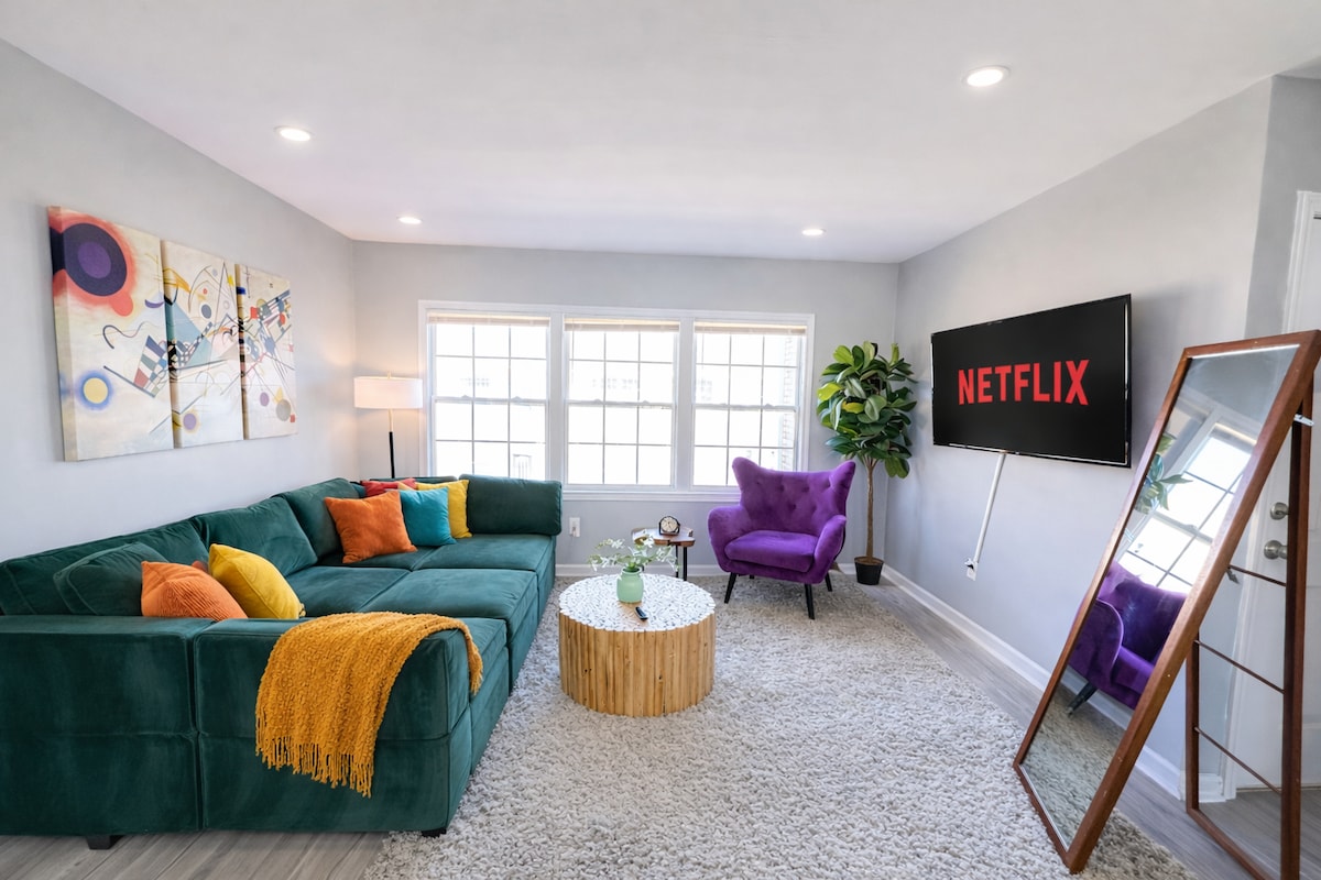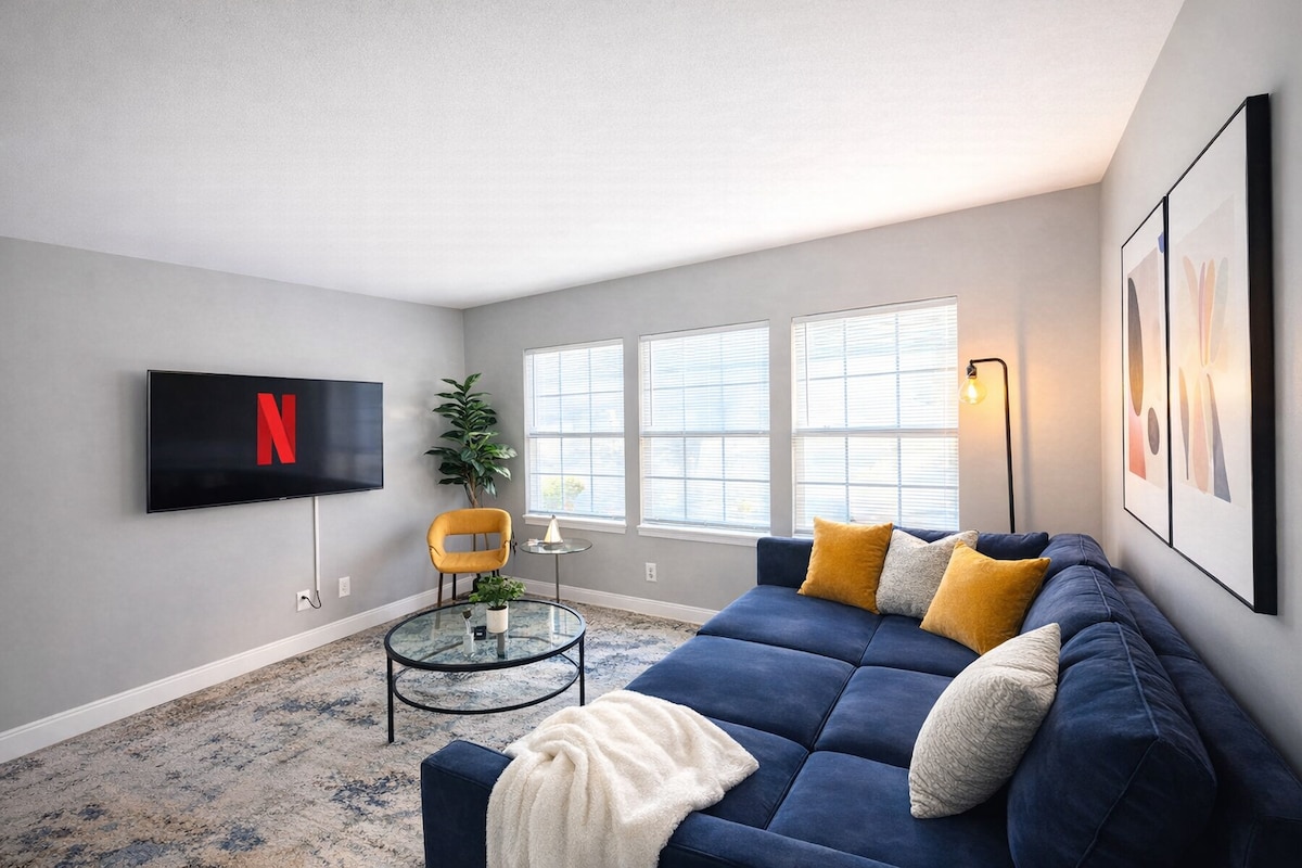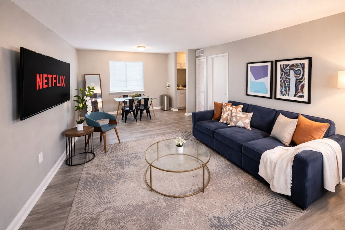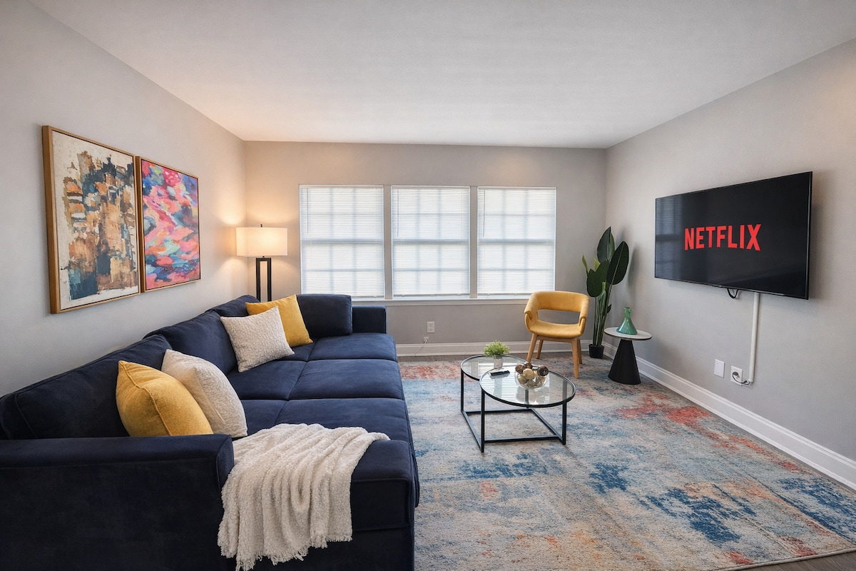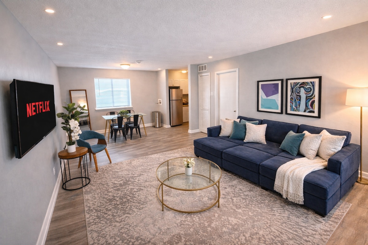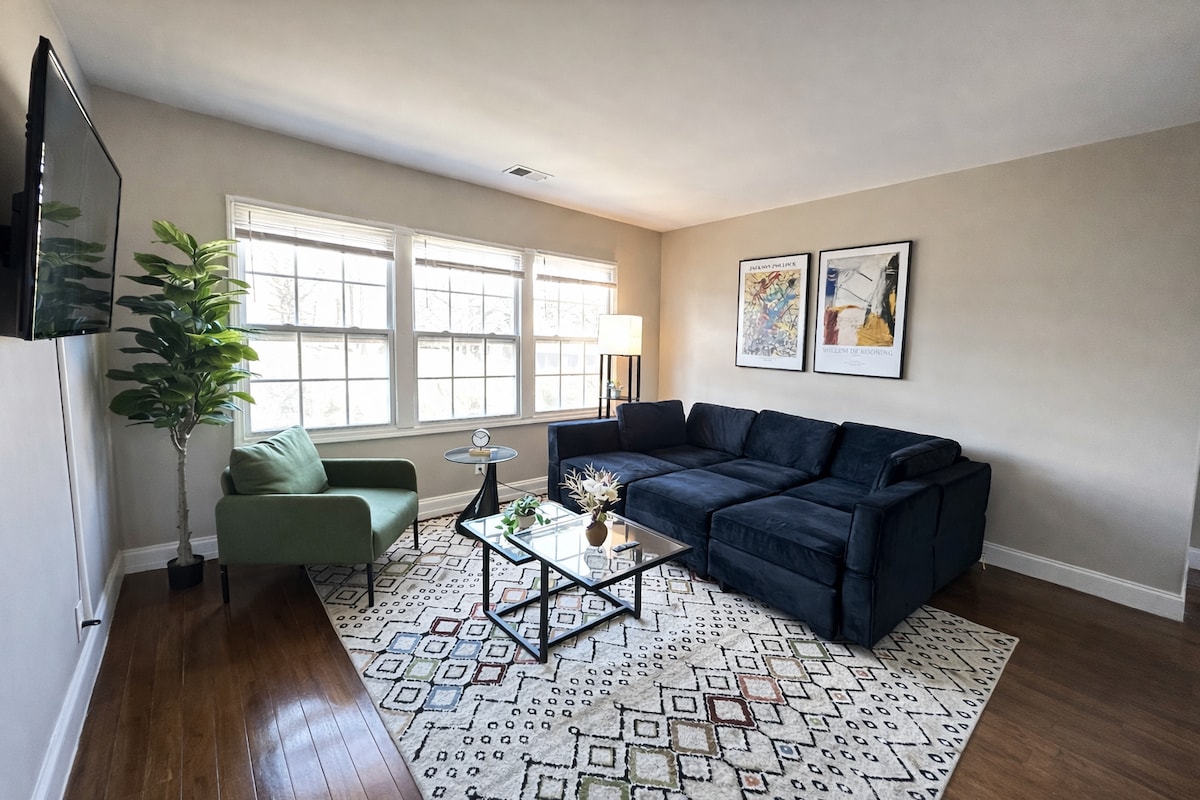 Welcome to your comfortable Birmingham home away from home! This thoughtfully designed 1-bedroom, 1-bathroom apartment offers the perfect mix of relaxation, function, and modern style. Whether you’re visiting for work, a weekend trip, or a city escape, this space makes it easy to settle in and unwind. Sunlight fills the apartment through multiple windows, highlighting warm floors, inviting decor, and cozy furnishings throughout.