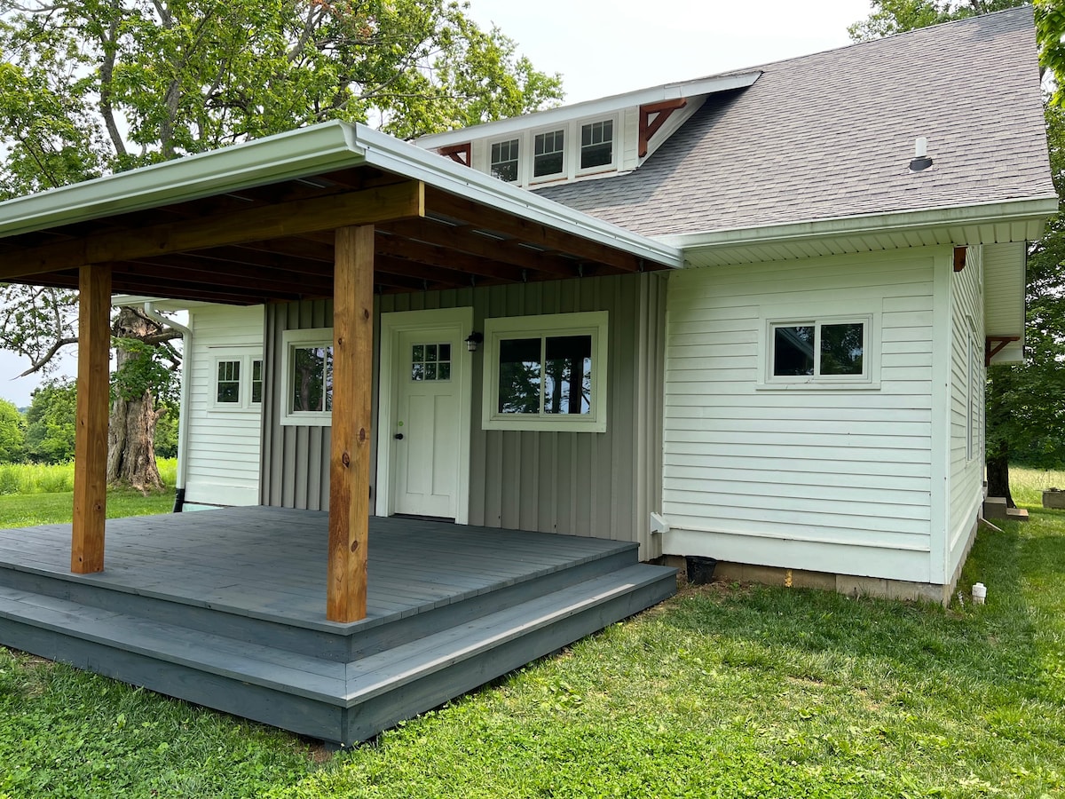 Stay and be delighted with this newly renovated two-story guest house which adjoins our 11-stall horse barn. Framed by covered porches and shade trees, our guest house is a wonderful place to unwind and relax during your stay in beautiful central Kentucky. The best of both worlds--a lovely rural setting situated only minutes from the interstate, making travel to Churchill Downs, Valhalla Golf Course, and other attractions in nearby Louisville and Frankfort a breeze.