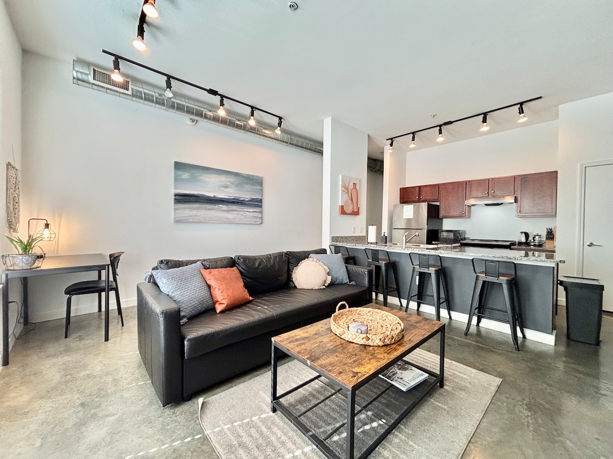 Step into urban elegance at this stunning loft-style apartment nestled in the heart of downtown Memphis, Tennessee. Located on South Front street this 1 bedroom, 1 bathroom apartment seamlessly blends a modern design with classical charm, a king bed, high ceilings, & large windows that flood the interior with natural light. Less then 4 minutes walk to the city's renowned attractions, including Beale Street's live music scene and a plethora of dining & entertainment options just steps away.