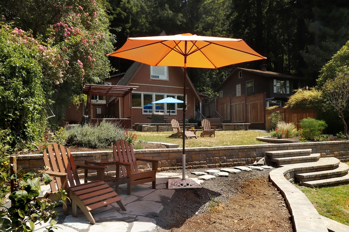 Our Russian River Getaway is perfect for solo travelers or couples looking for a peaceful getaway. It is nestled in the trees, quiet and private, and conveniently located three blocks to the beach and two miles to downtown Guerneville. This bright and cozy studio cabin has a queen size bed, bathroom and kitchenette. It is located only 4 miles from Armstrong Redwoods, 15 miles to the gorgeous Sonoma coast and close to many wineries.